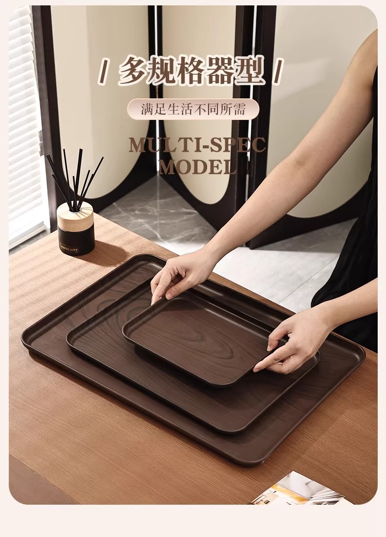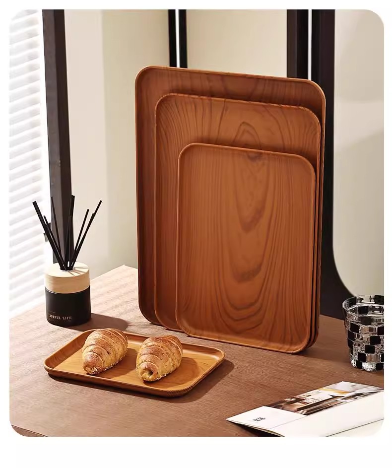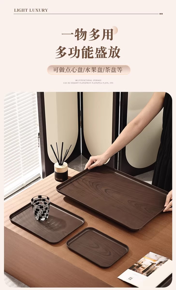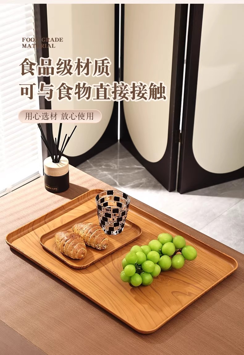 크리 에이 티브 모조 나뭇결 호두 가정용 플라스틱 트레이 직사각형 차 트레이 상업용 호텔 워터 컵 주전자 보관함스토어 가기