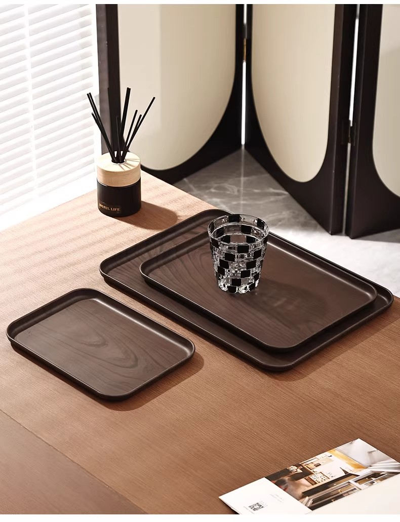 크리 에이 티브 모조 나뭇결 호두 가정용 플라스틱 트레이 직사각형 차 트레이 상업용 호텔 워터 컵 주전자 보관함