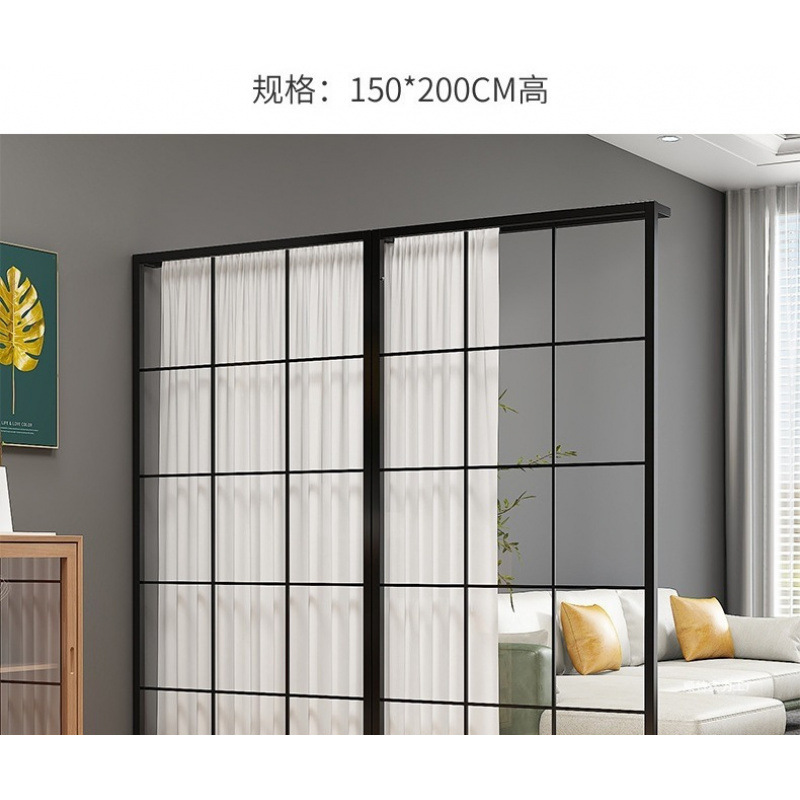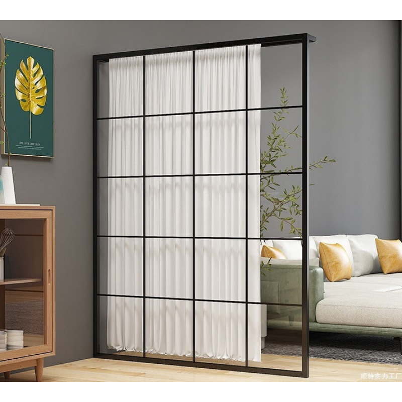 가정용 북유럽 스타일 철 파티션 스크린 거실 입구 매장 칸막이 벽 간단한 검은 프레임 장식 커튼