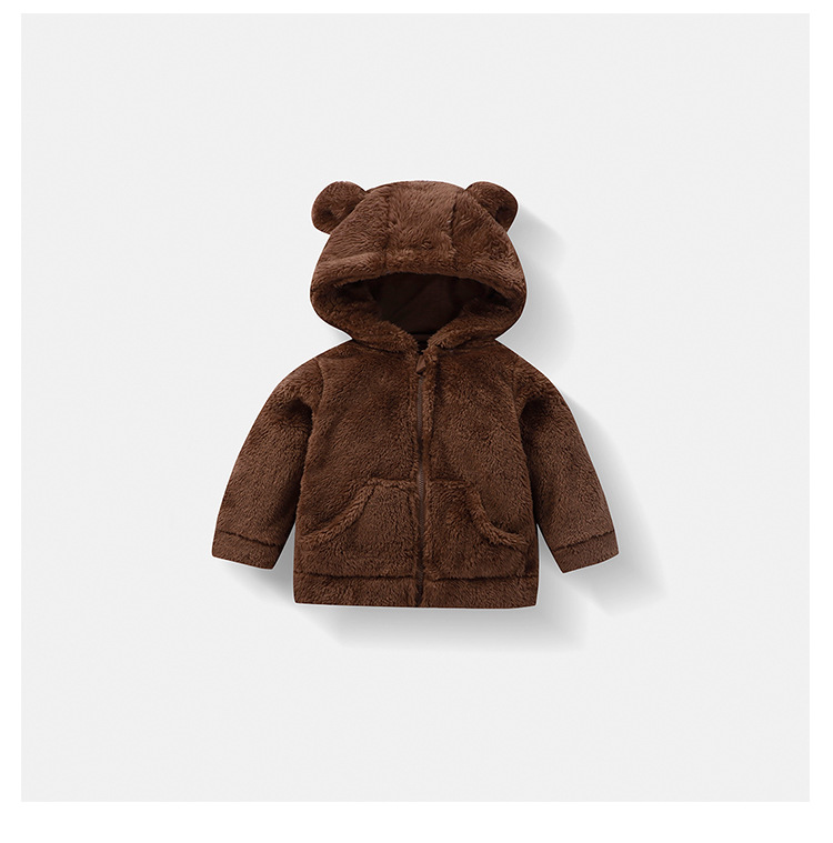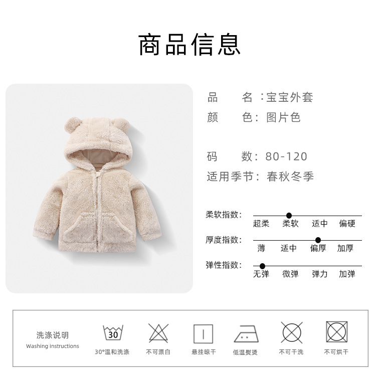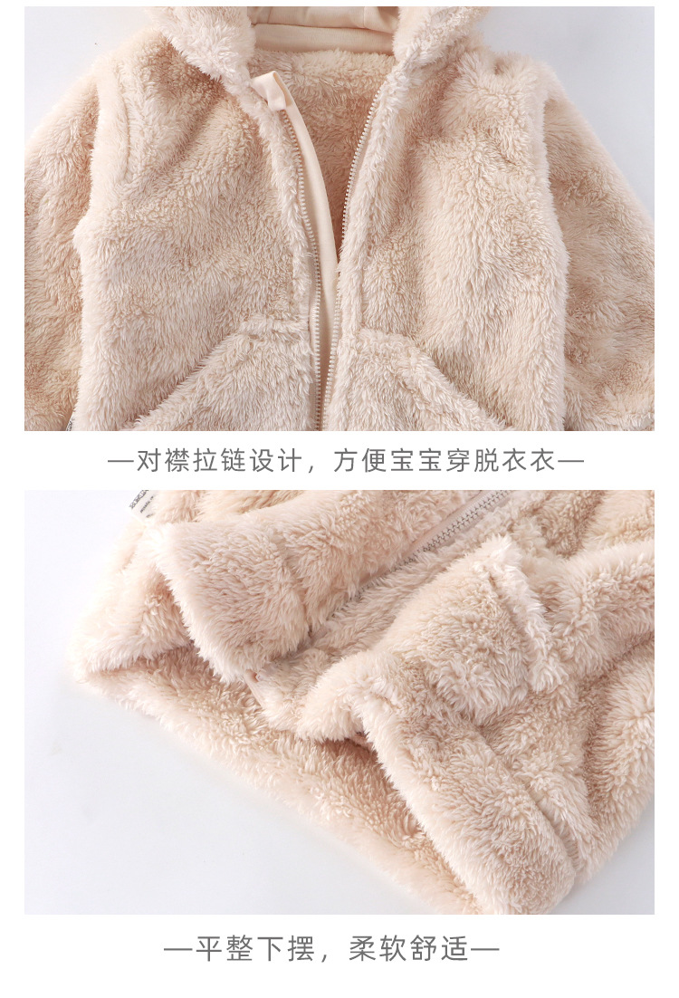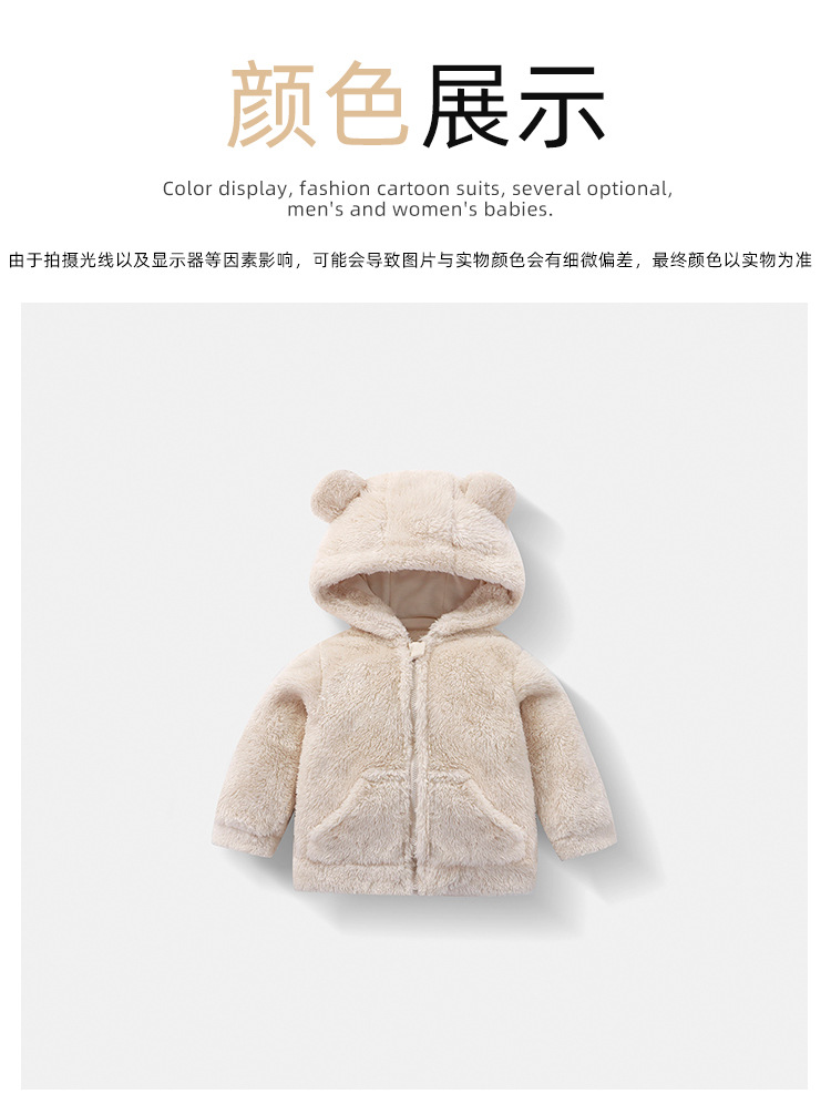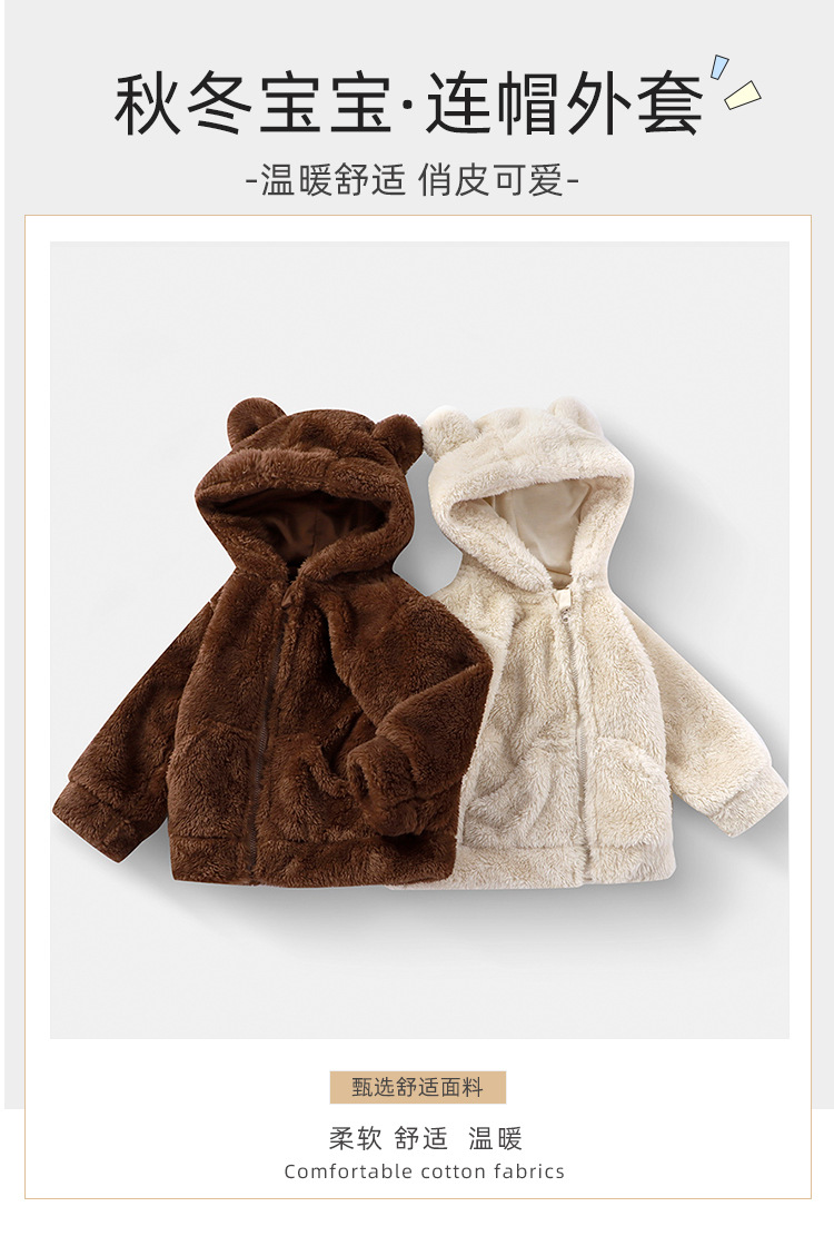 어린이 플러시 탑 가을, 겨울 어린이 후드 플러시 따뜻한 재킷 남성과 여성의 아기 지퍼 플러시 스웨터 재킷