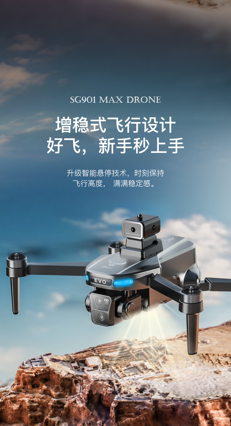 신제품 SG901MAX 4.5inch 화면 제어 지능형 장애물 회피 브러시리스 4축 드론 GPS 자동 반환 비행기스토어 가기