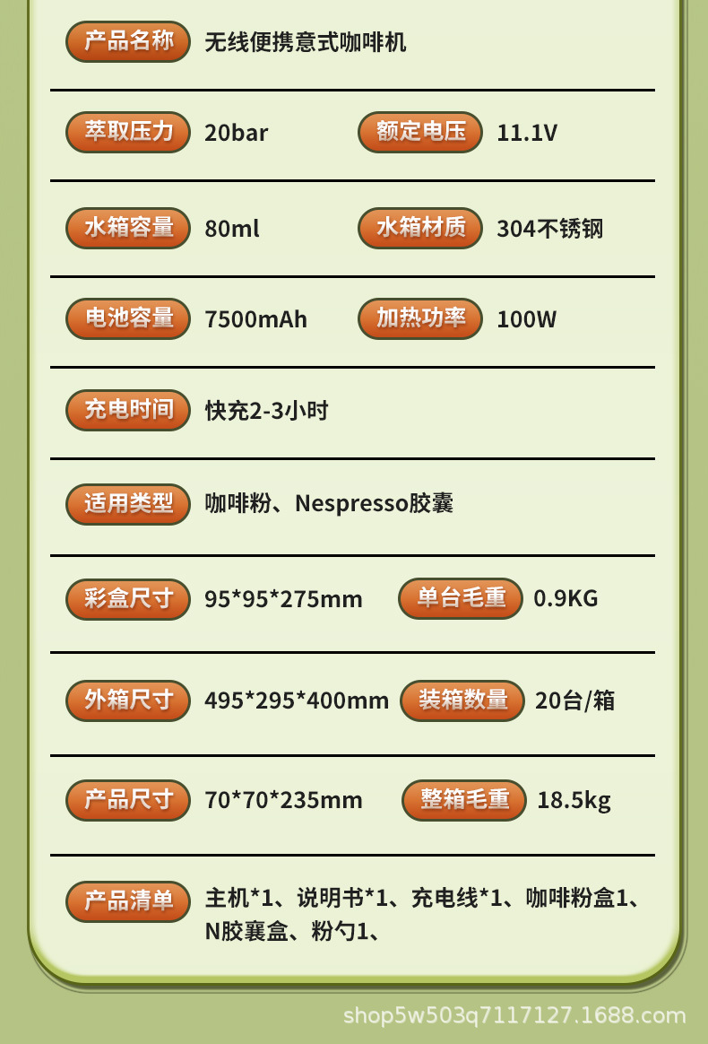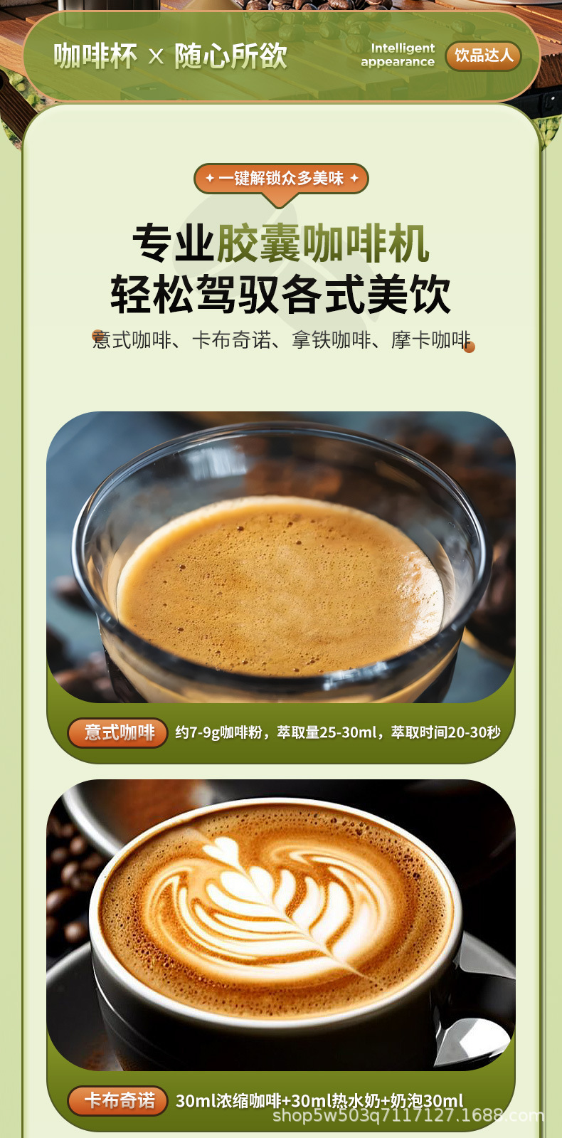 국경 간 무선 휴대용 캡슐 커피 머신, 냉온, 완전 자동 이탈리아 펌프 압력 농축 커피 머신스토어 가기