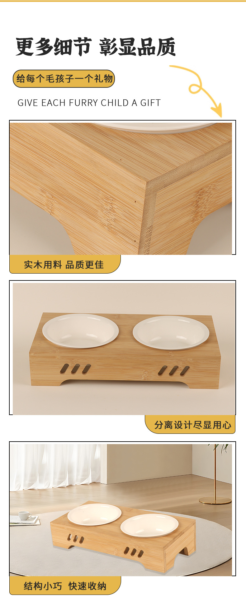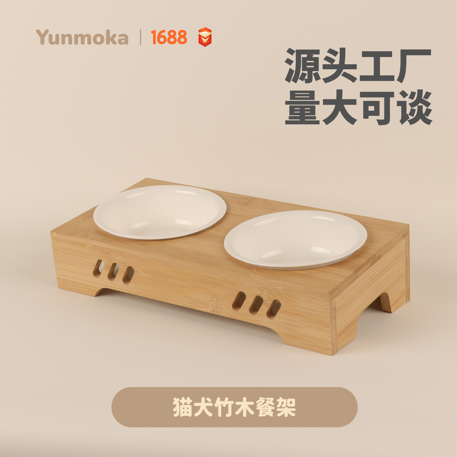 국경 간 도매 고양이 대나무 그릇 받침대 애완동물 급식기 넘어짐 방지 밥그릇 새끼 고양이 이중 그릇 고양이 사료 그릇 물그릇스토어 가기