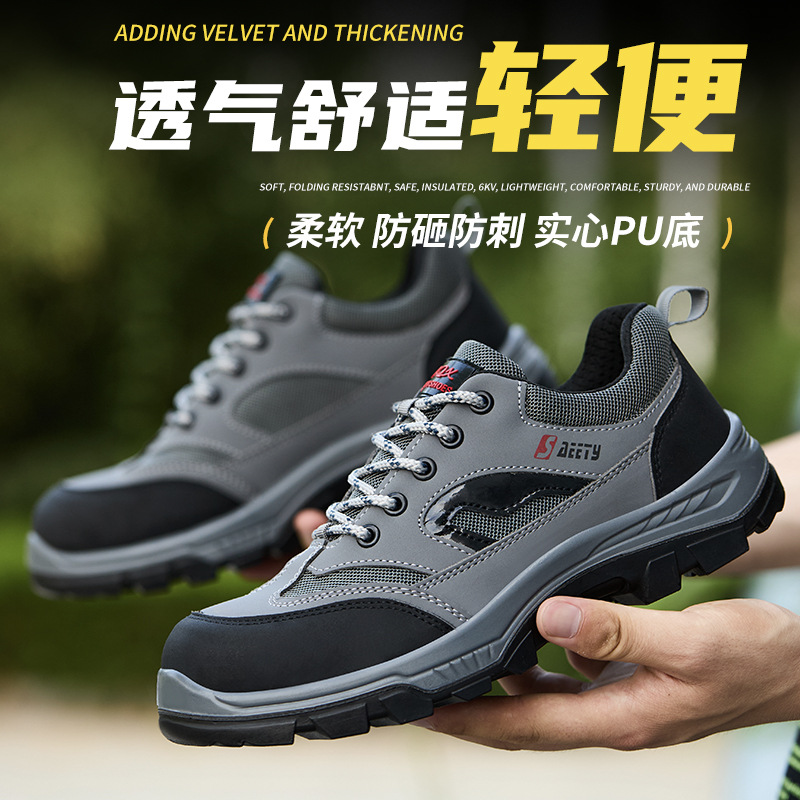 남성용 노동 보호 신발, 플라스틱 강철 발가락, 여름 통기성, 충격 방지, 펑크 방지, 가볍고 편안하며 견고한 바닥 건설 현장 안전 작업 신발