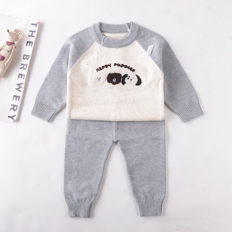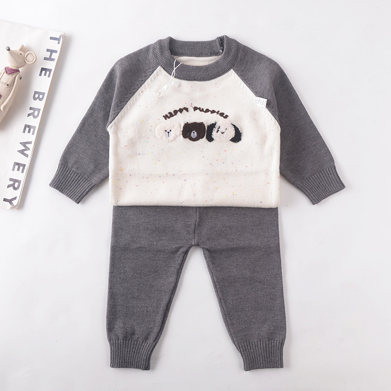 2025 새로운 가을 유아 및 유아용 스웨터 아동용 투피스 탑과 바지 소년 스웨터 아동복 배치
