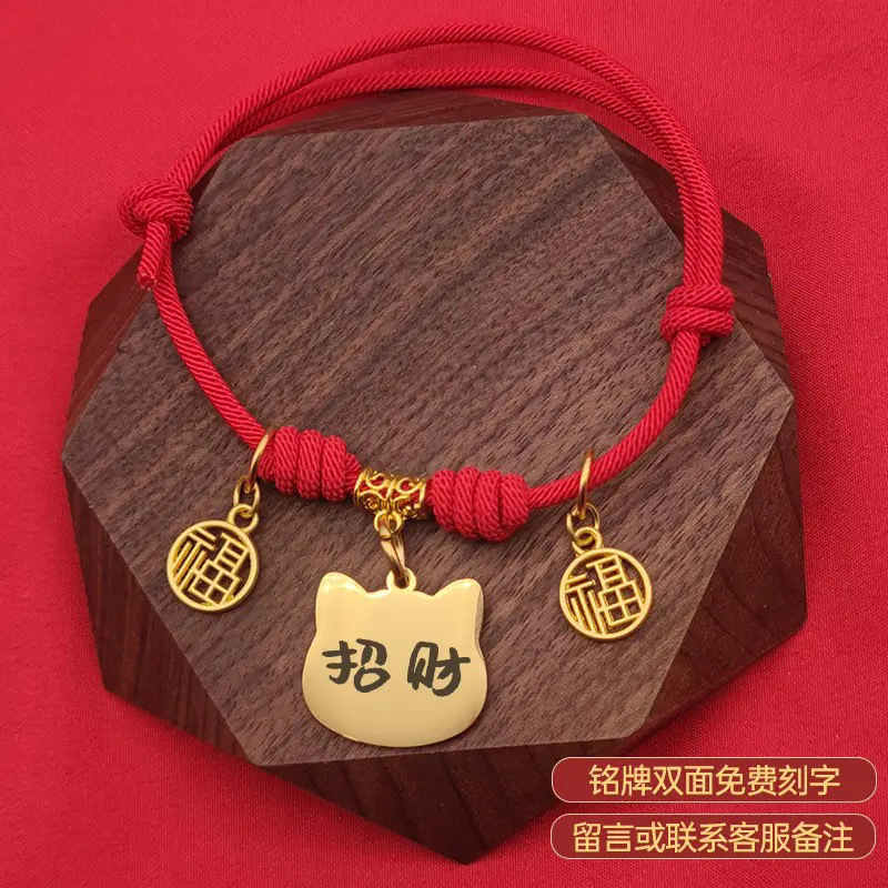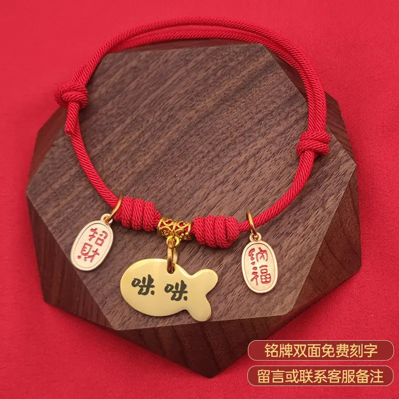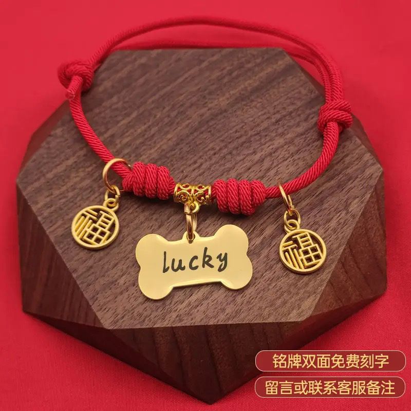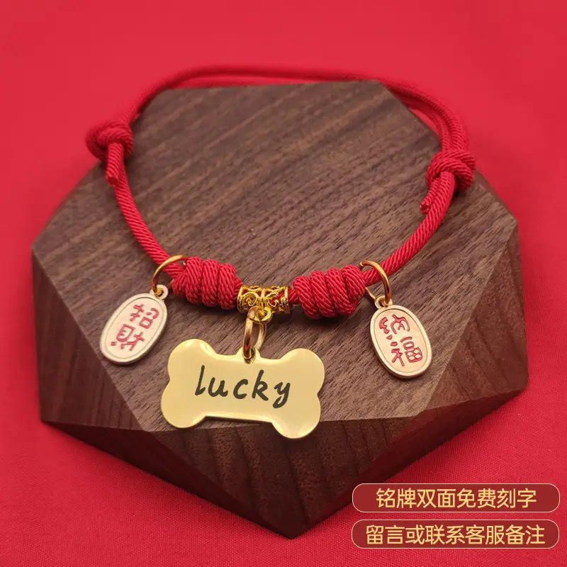 • 빨간색 행운의 무료 새겨진 고양이 명찰
