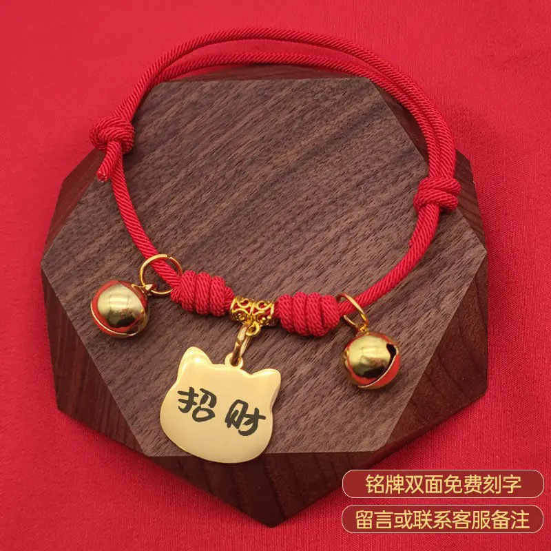 • 레드 럭키 벨(사운드 포함) - 무료 각인 고양이 태그