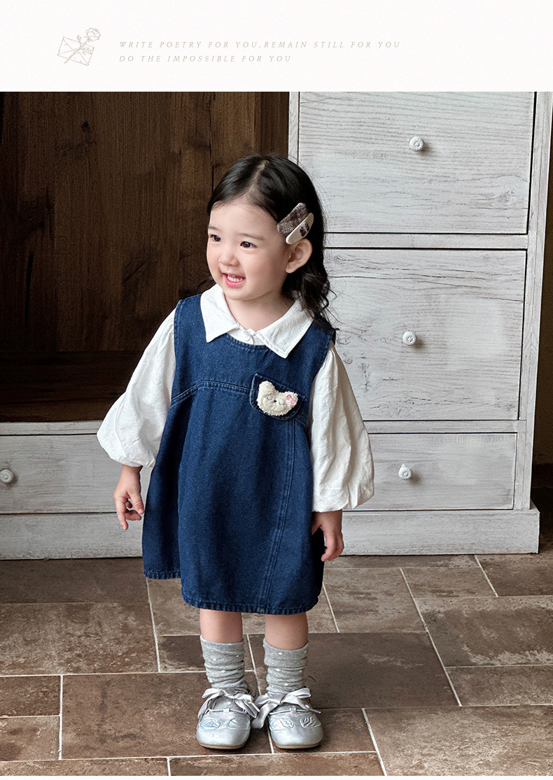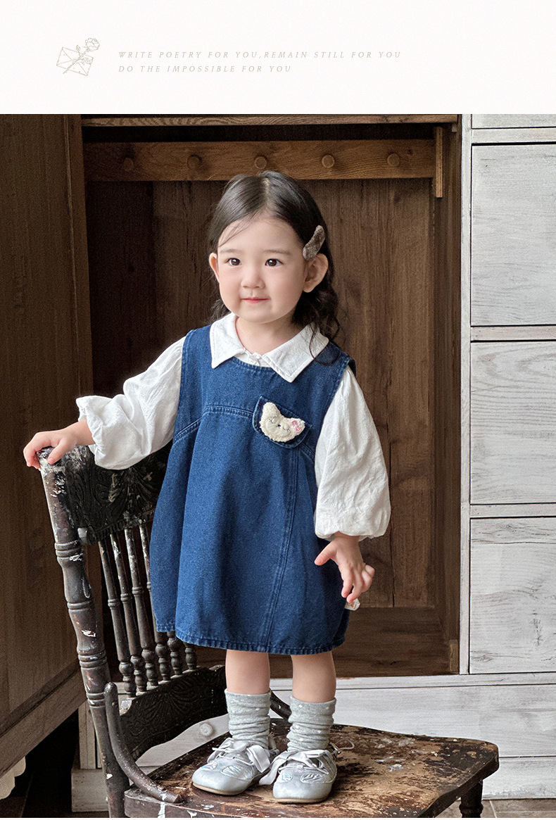 2025 가을 신제품 여아 및 유아 정장 한국식 라펠 칼라 바닥 셔츠 데님 조끼 드레스 투피스 세트스토어 가기