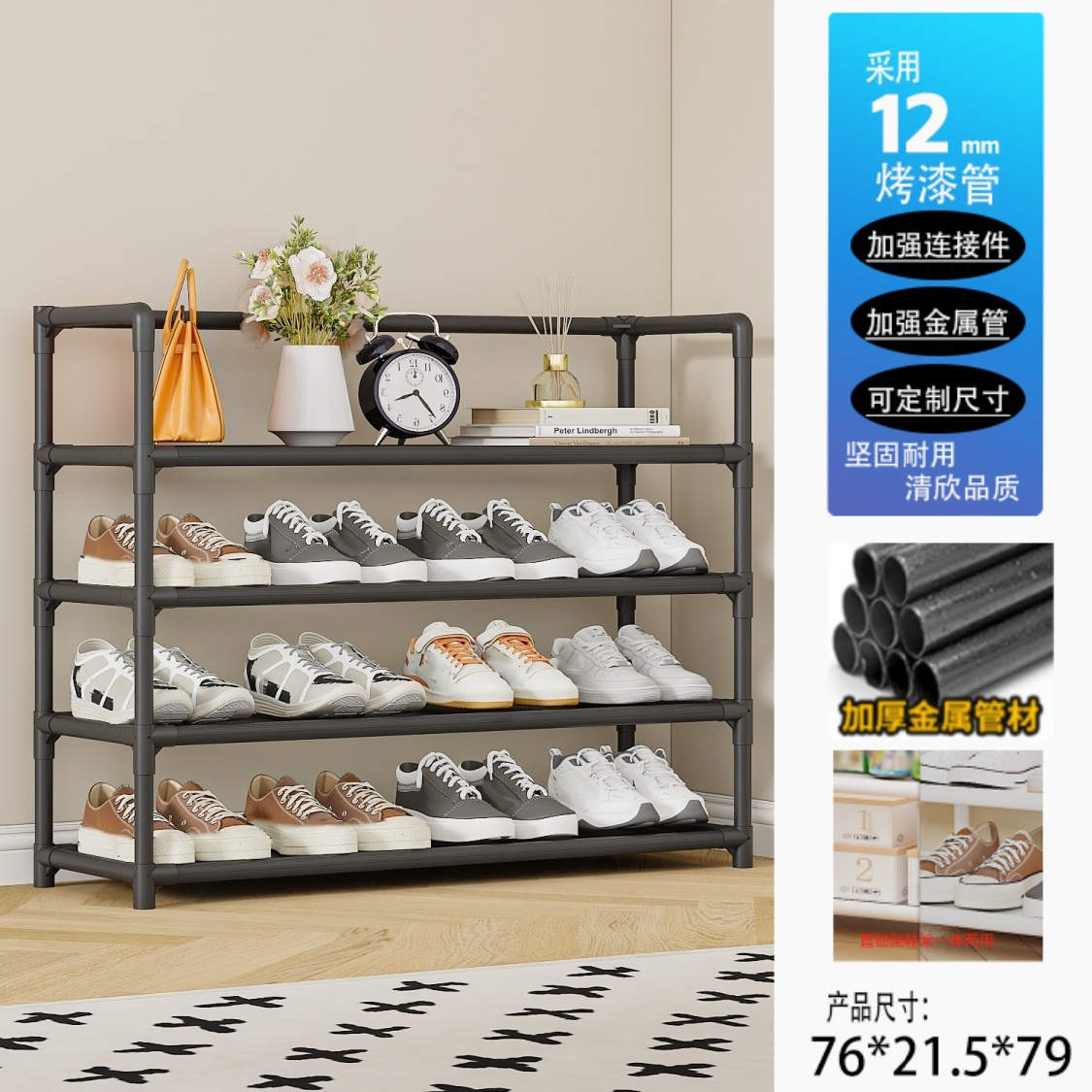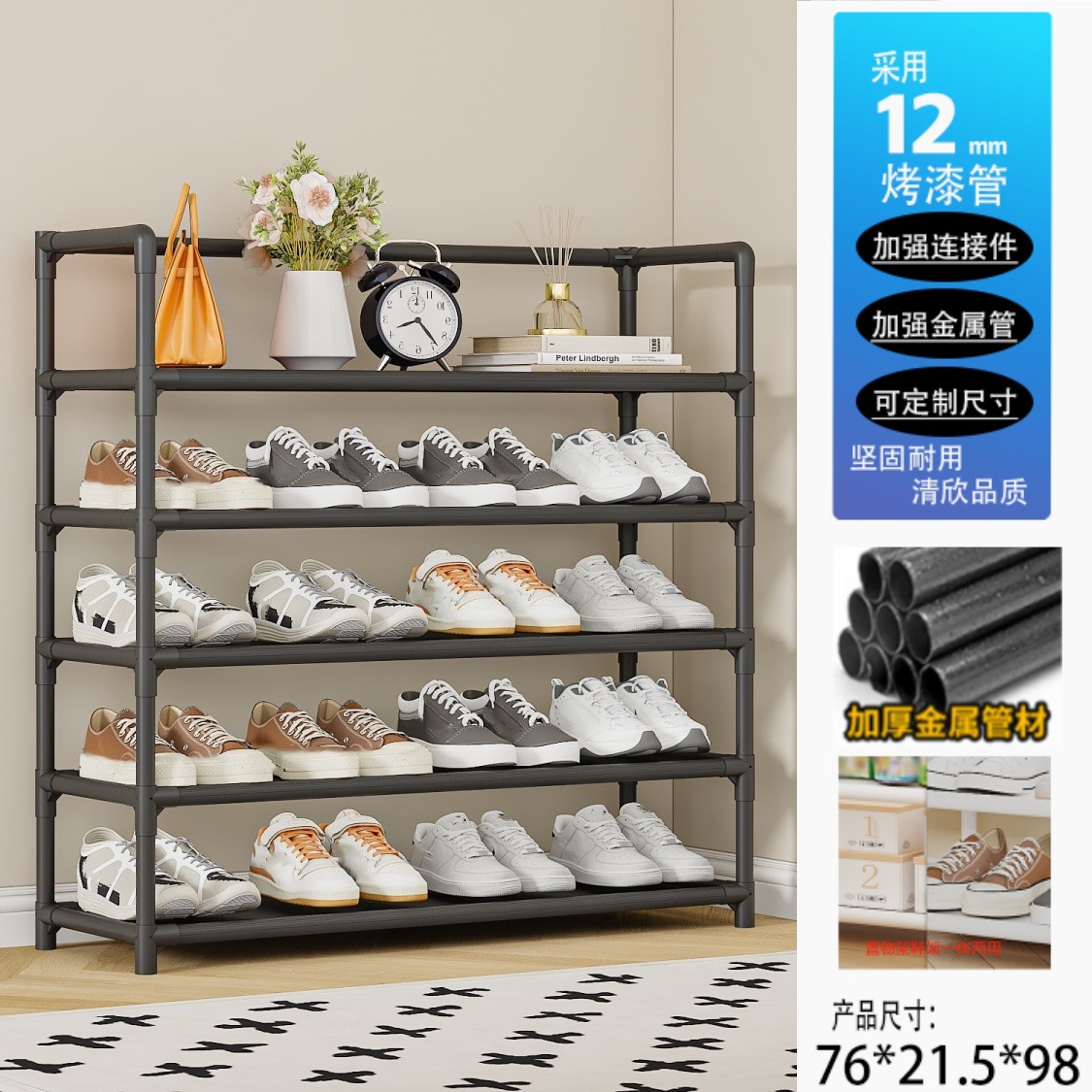 팔걸이 신발장 간단한 가정용 일체형 실내 다층 수납 선반 방진 학생 기숙사 수납 선반 신발장