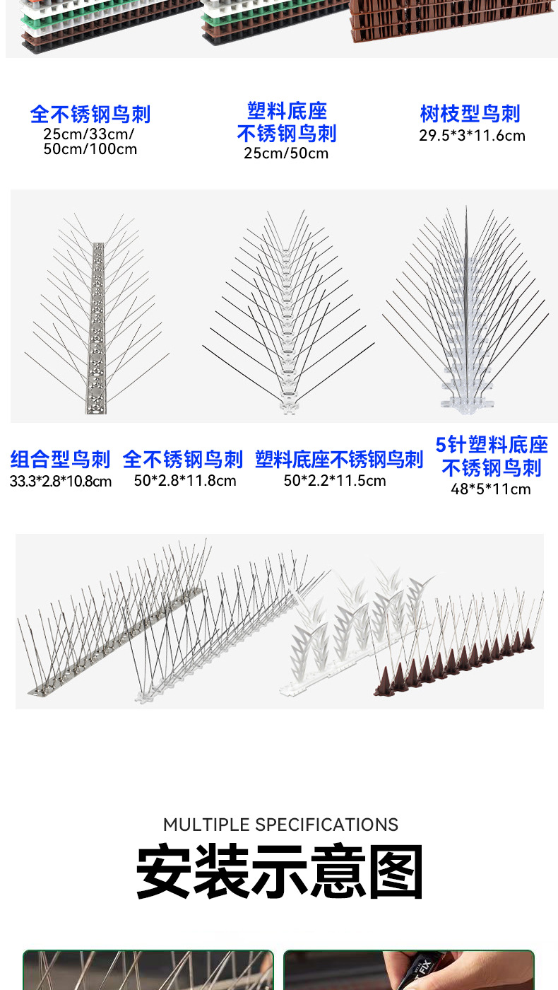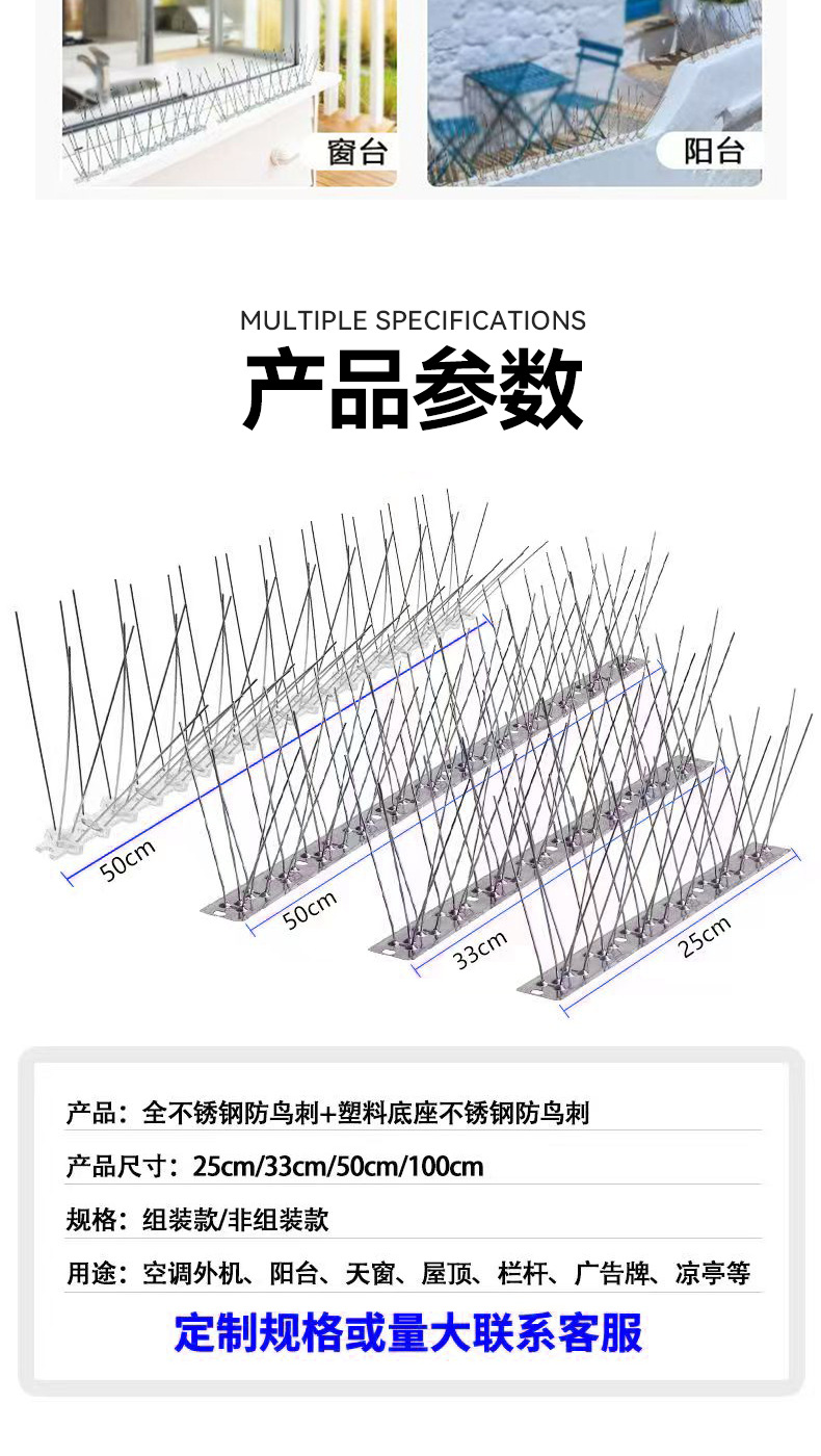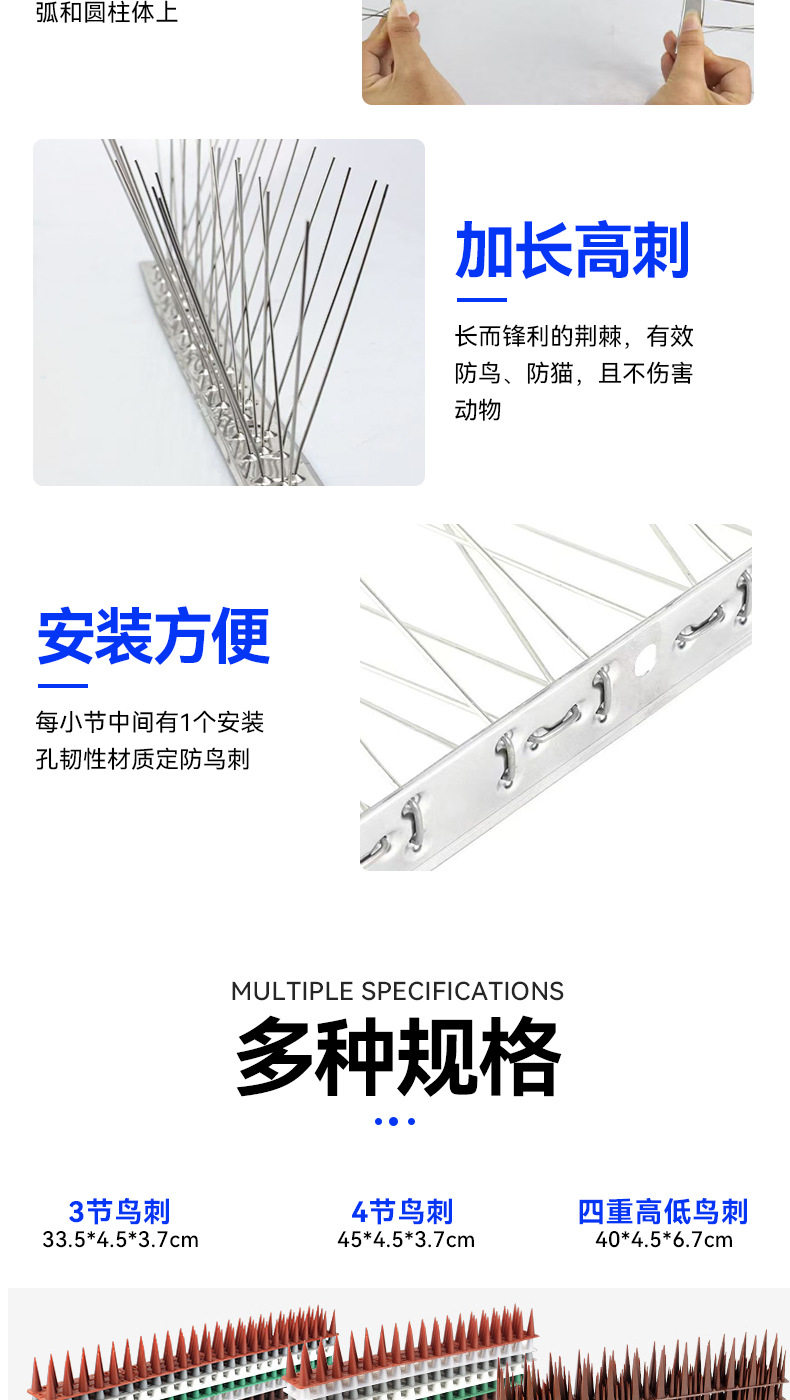 스테인레스 스틸 조류 방지 가시 304 고양이 방지 등반 방지 가시 조류 구충제 전력 25cm33cm50cm100cm 조류 구충제 보호