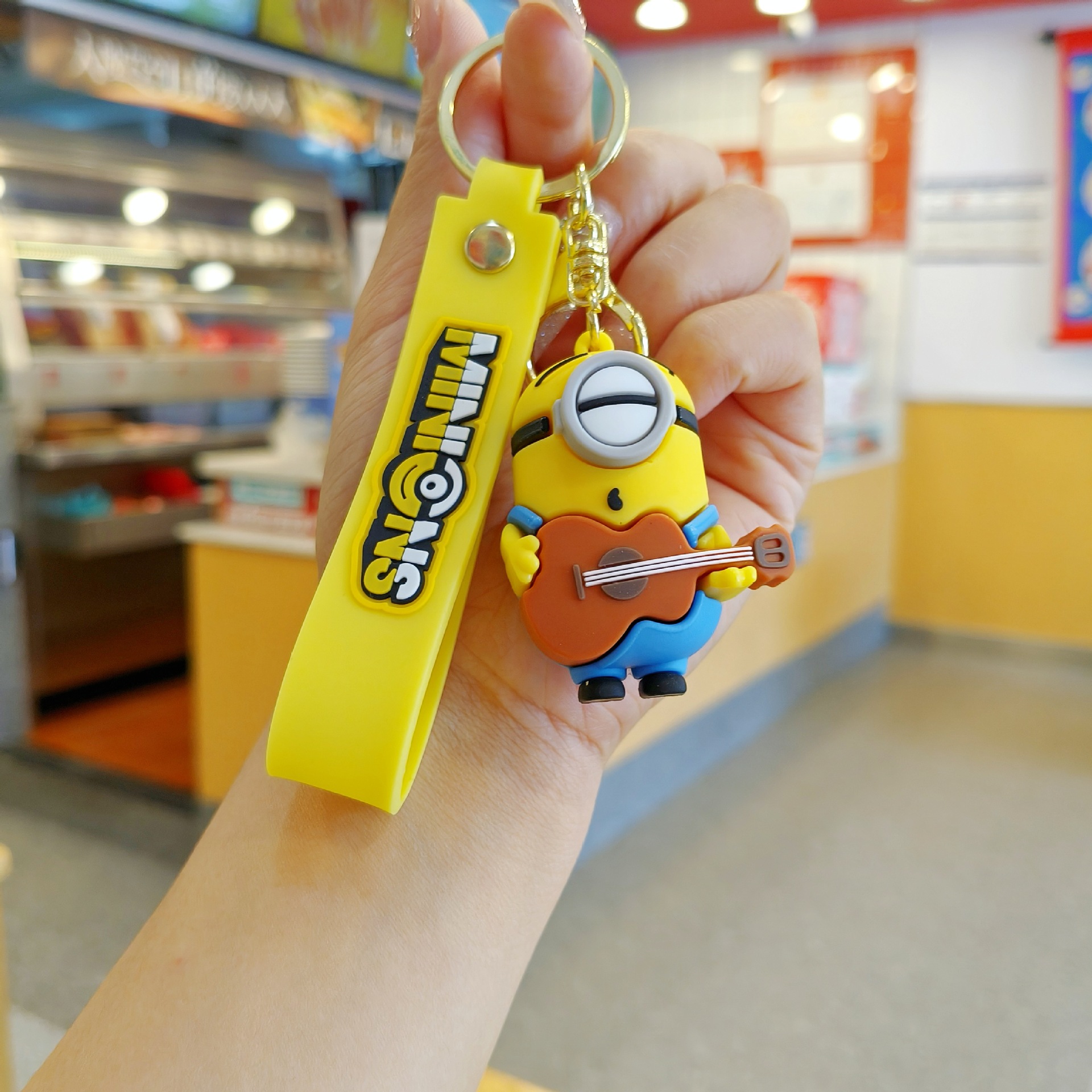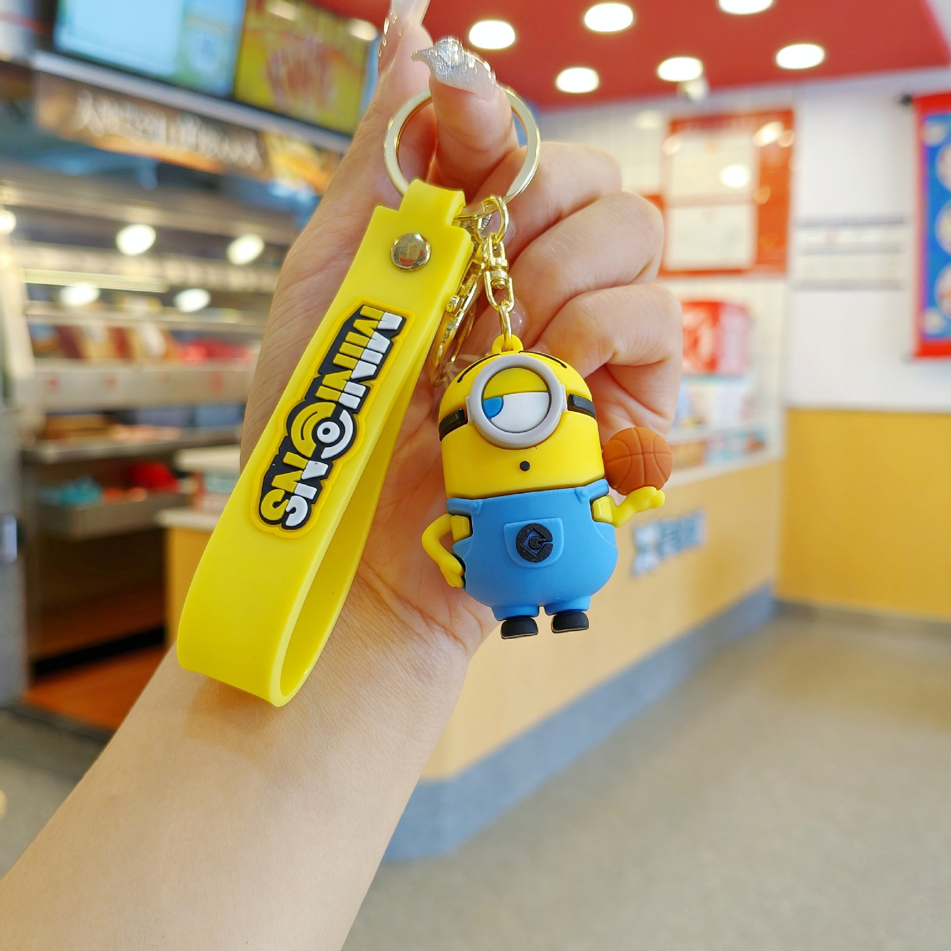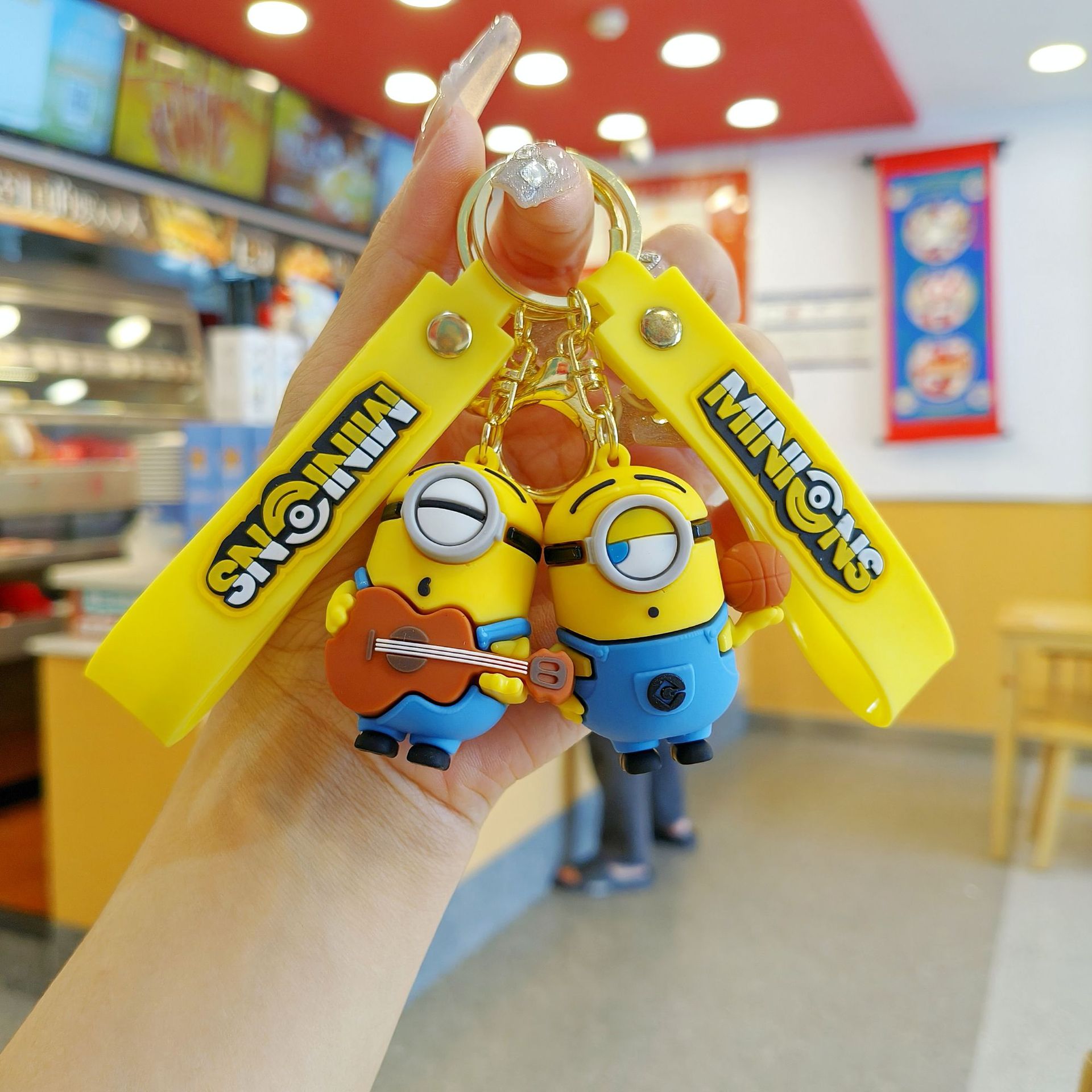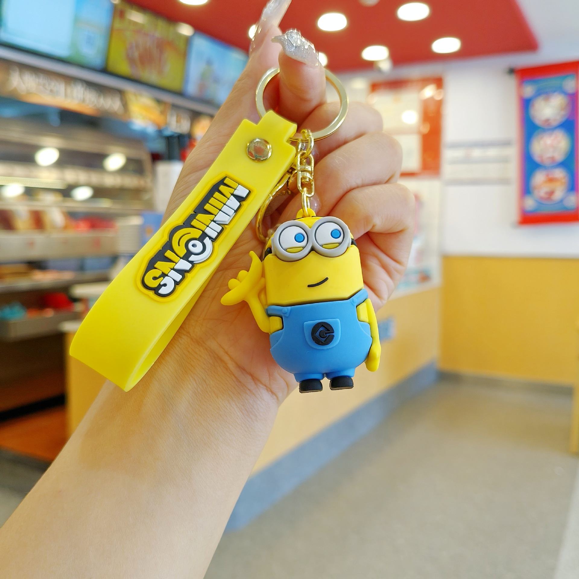 새로운 만화 귀여운 애니메이션 만화 미니언 키 체인 펜던트 커플 가방 펜던트 인형 기계 작은 선물스토어 가기