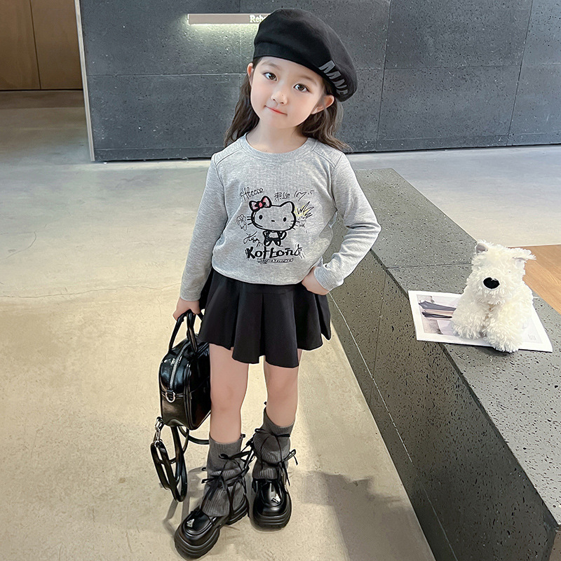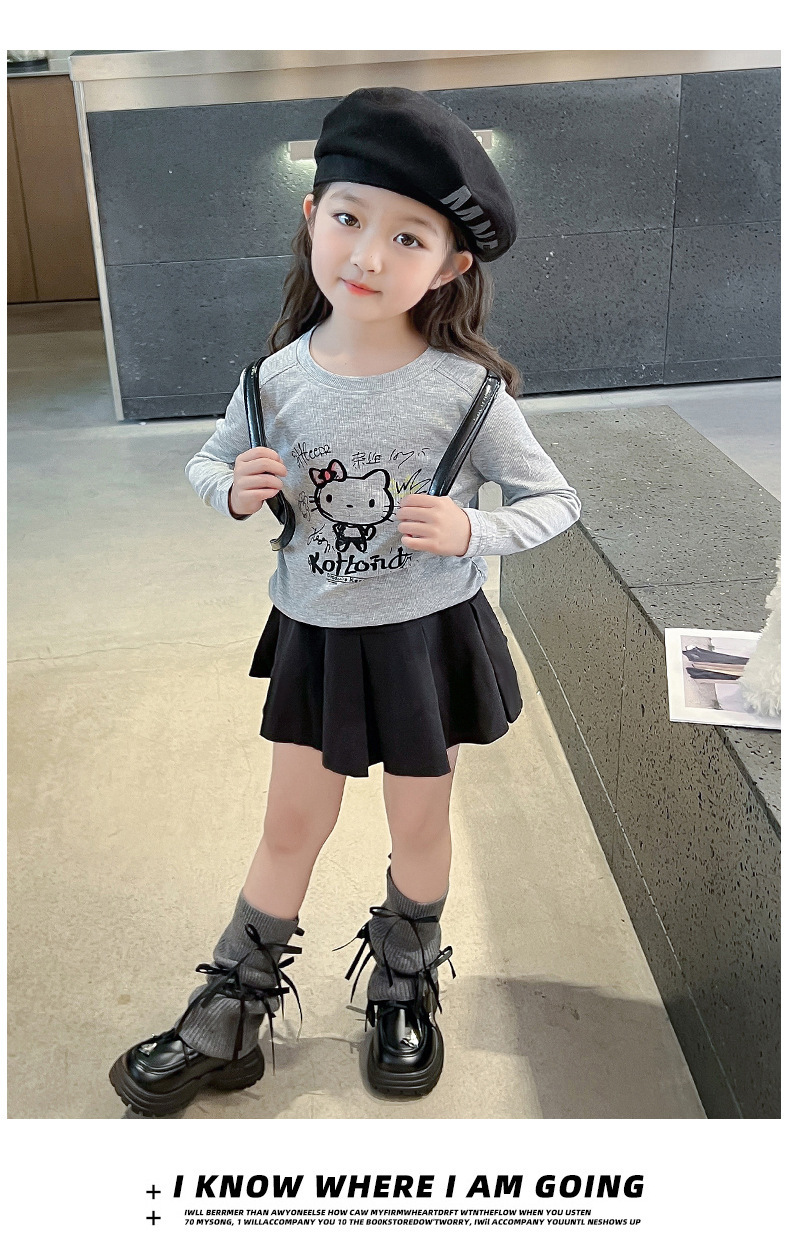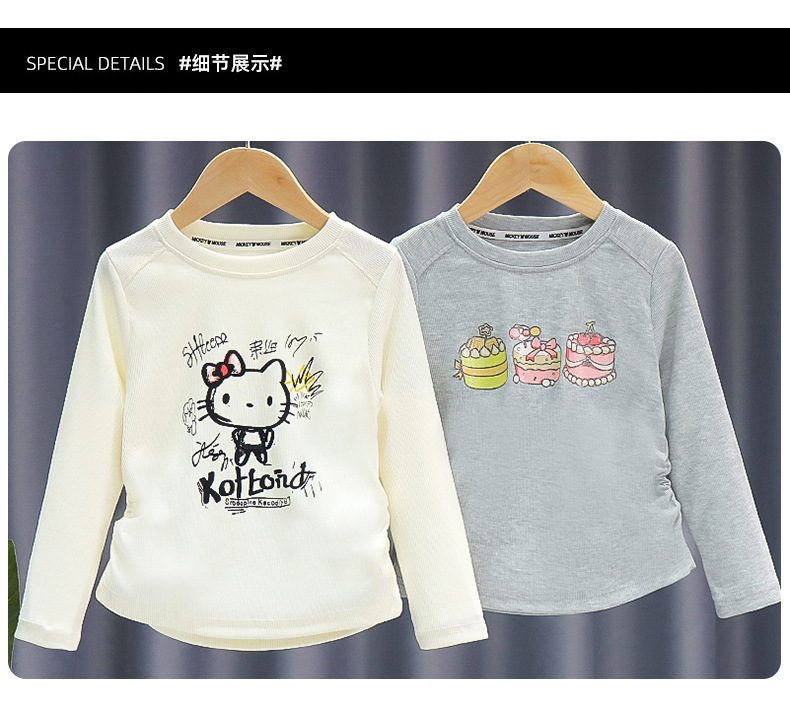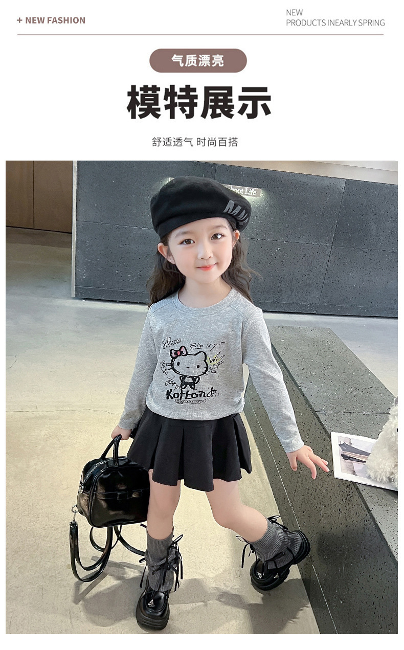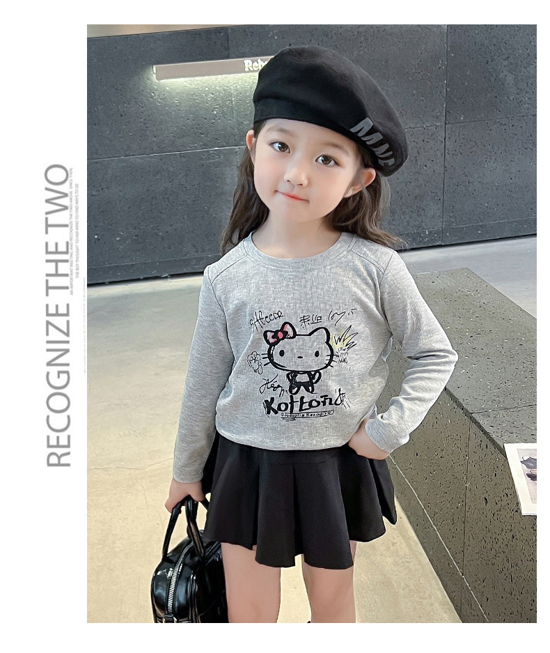 2025 봄, 가을 얇은 패션 티셔츠 여성 틈새 루즈 탑 라운드 넥 세련된 새로운 긴팔 고양이 프린트 트렌드스토어 가기