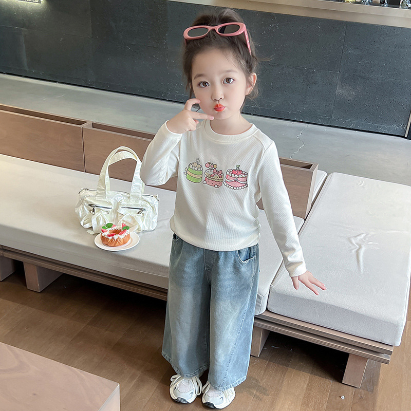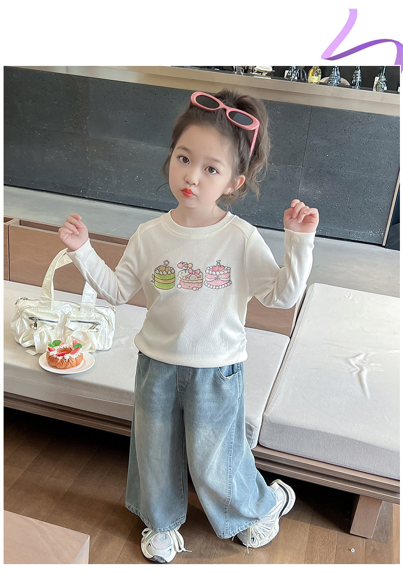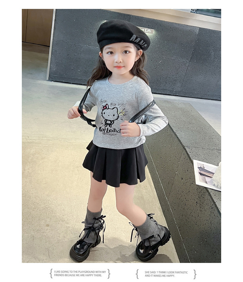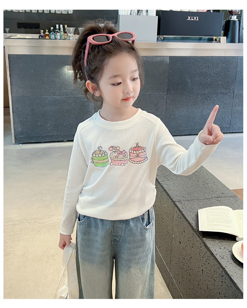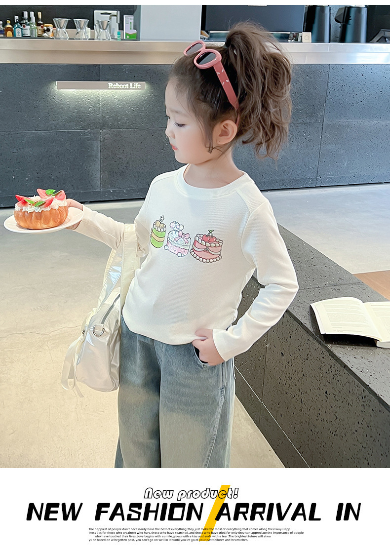 2025 봄, 가을 얇은 패션 티셔츠 여성 틈새 루즈 탑 라운드 넥 세련된 새로운 긴팔 고양이 프린트 트렌드스토어 가기