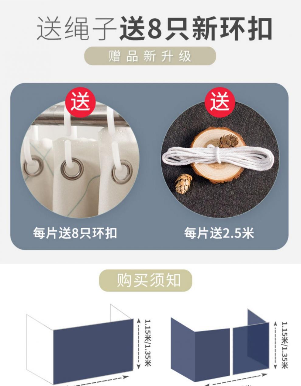 • 2.2m 길이 * 1.15m 높이 [침대 커튼 2개] 정면 + 양 측면 가림