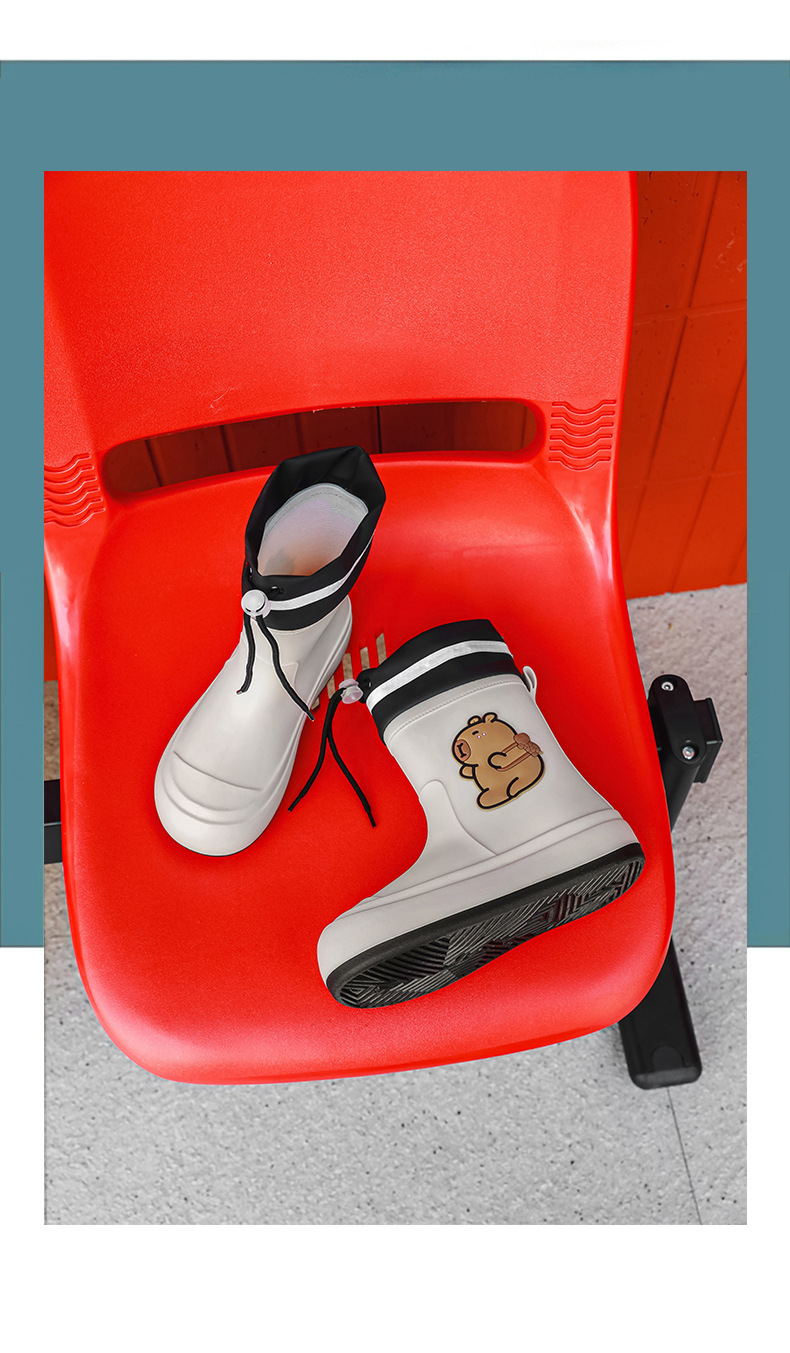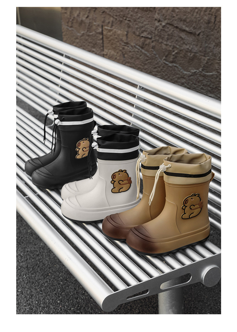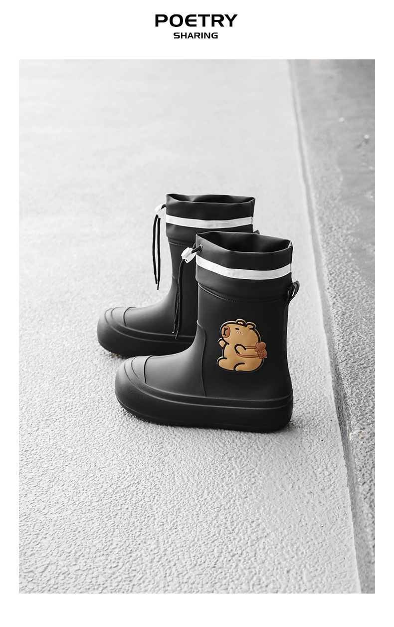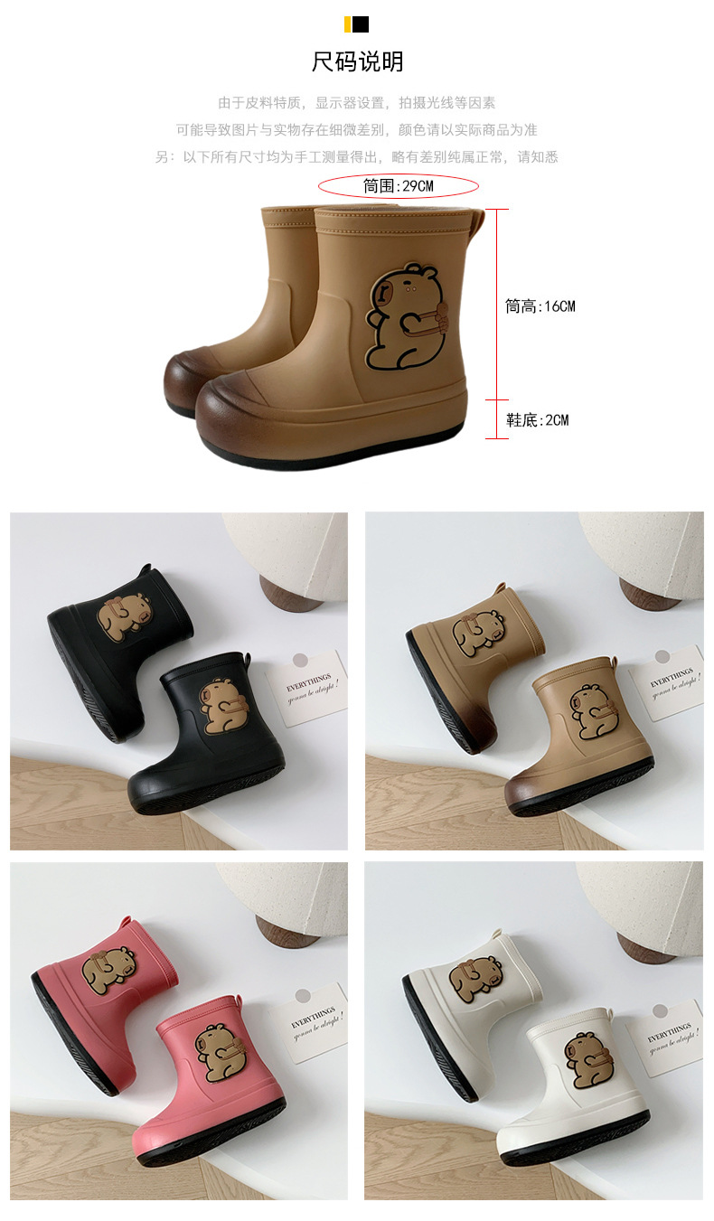크로스보더 부모-자식 장화, 큰 어린이 카피바라 여성용 미드 튜브 장화, 야외 경량 방수 신발, 미끄럼 방지 고무 신발