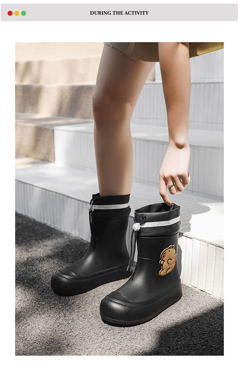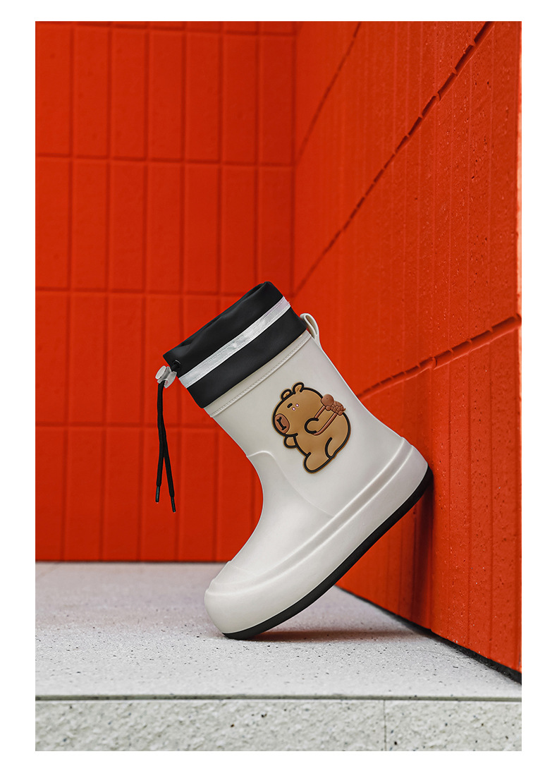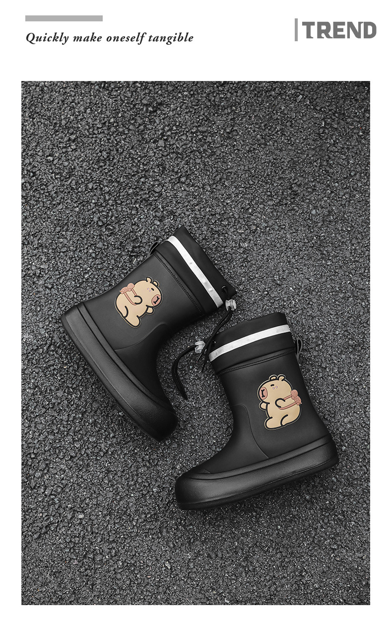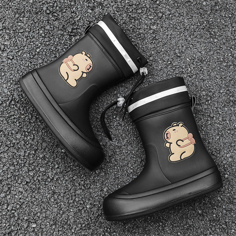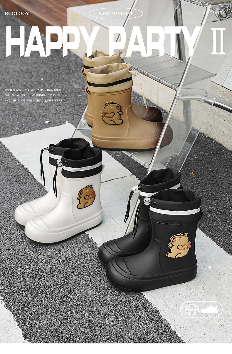 크로스보더 부모-자식 장화, 큰 어린이 카피바라 여성용 미드 튜브 장화, 야외 경량 방수 신발, 미끄럼 방지 고무 신발