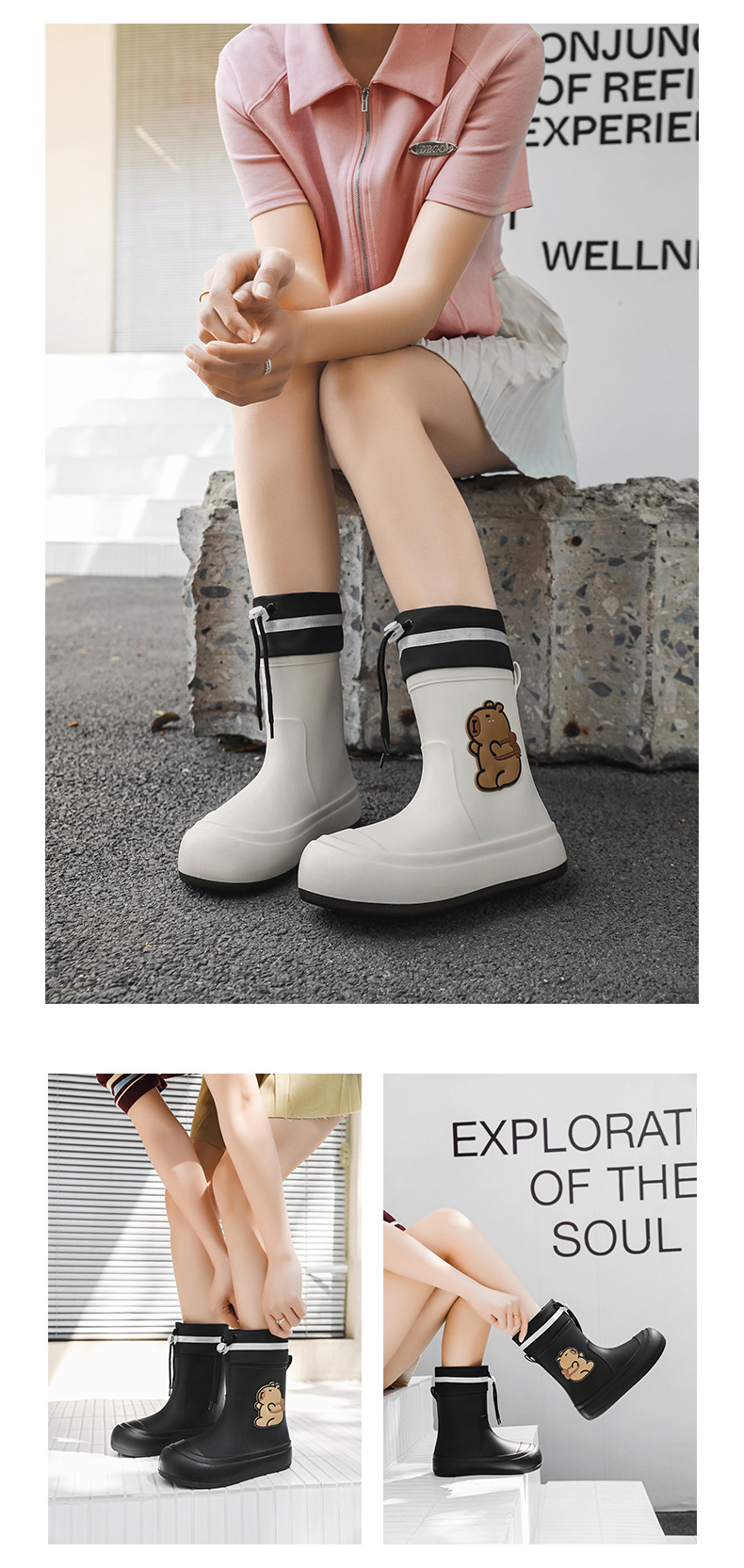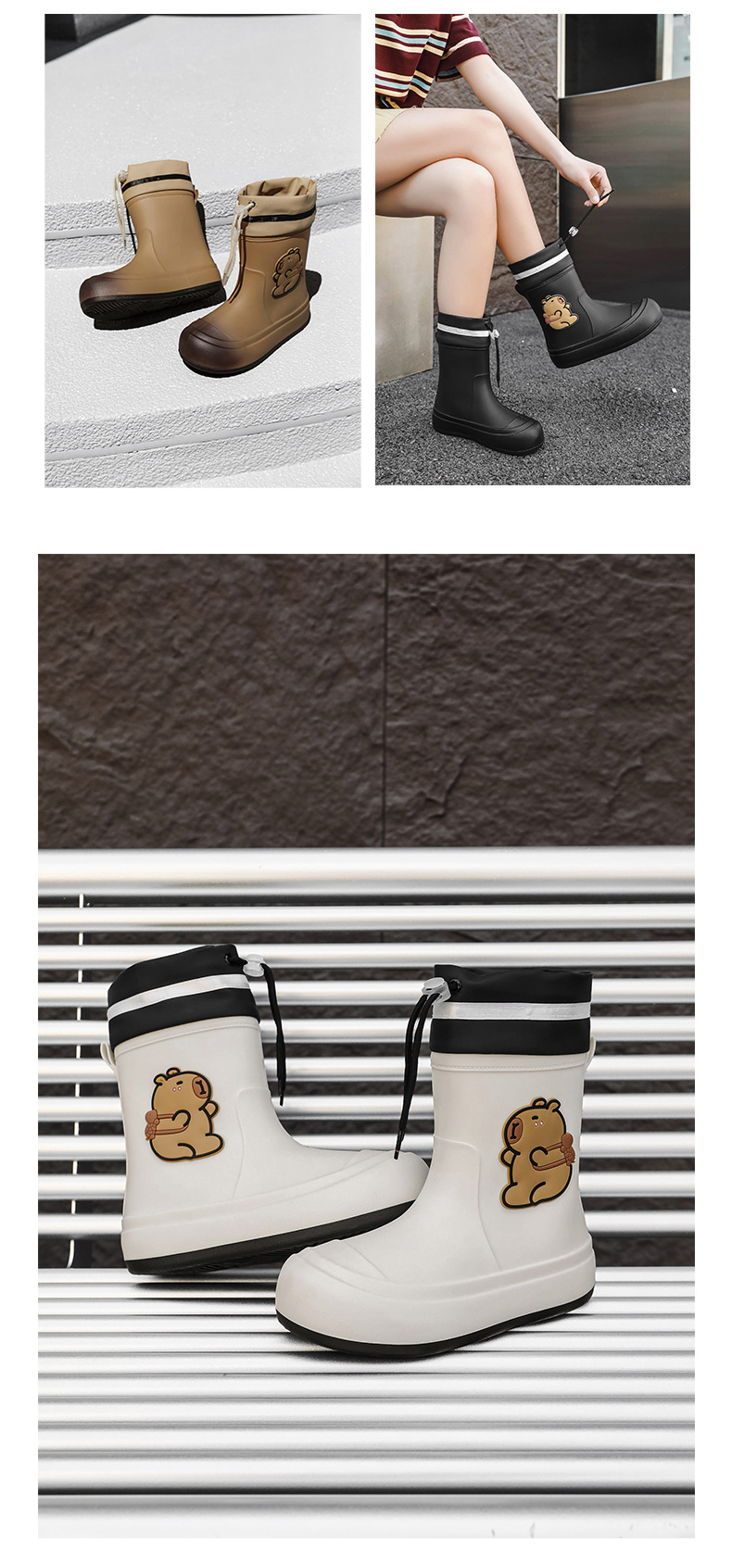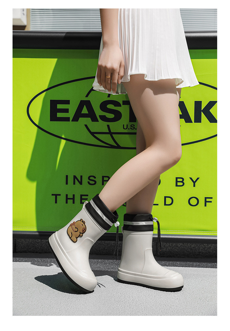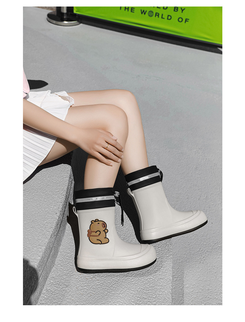 크로스보더 부모-자식 장화, 큰 어린이 카피바라 여성용 미드 튜브 장화, 야외 경량 방수 신발, 미끄럼 방지 고무 신발