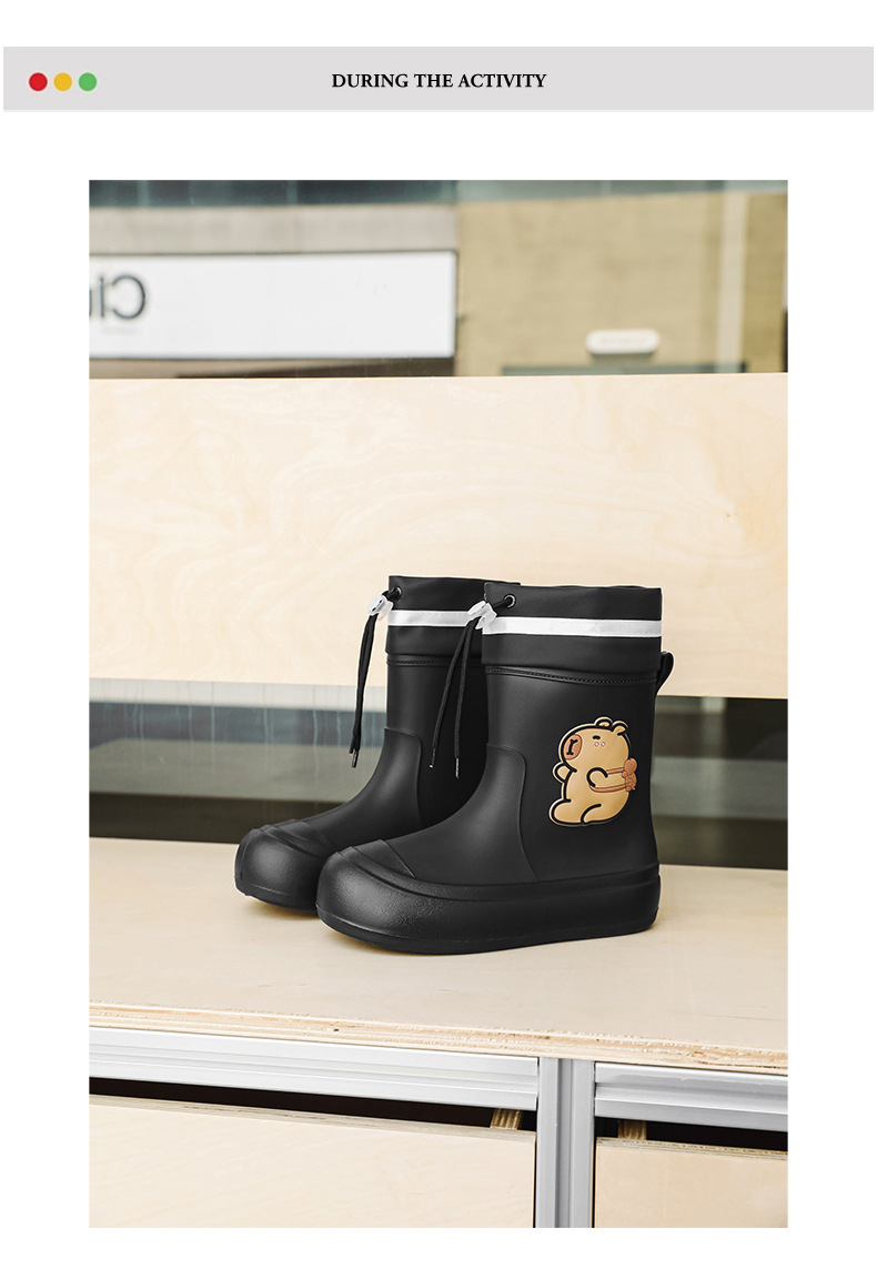 크로스보더 부모-자식 장화, 큰 어린이 카피바라 여성용 미드 튜브 장화, 야외 경량 방수 신발, 미끄럼 방지 고무 신발스토어 가기