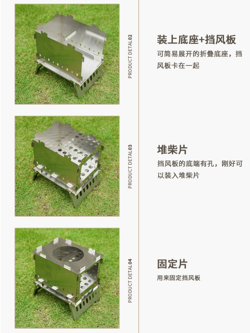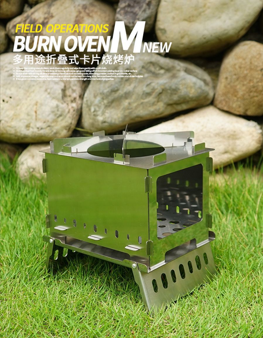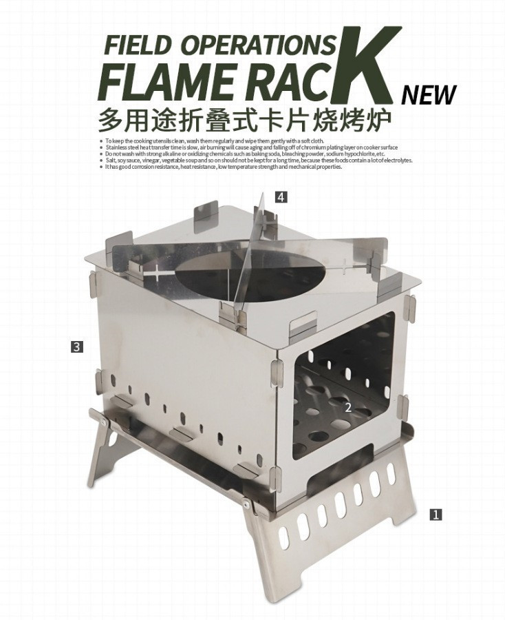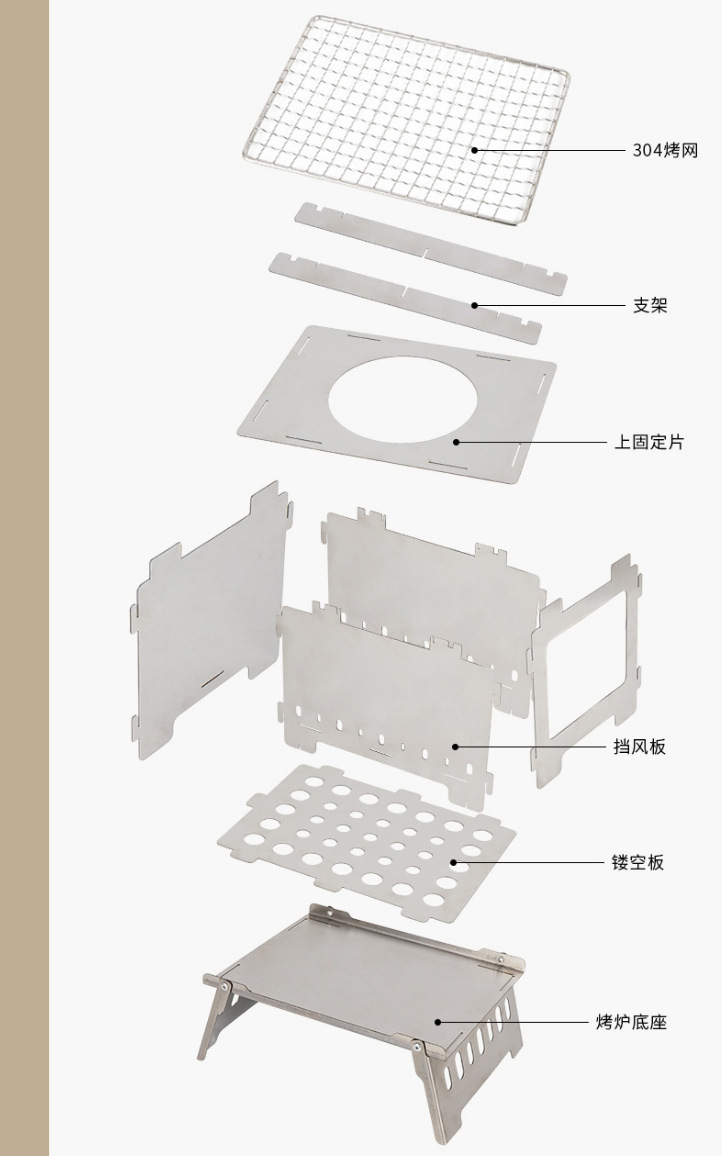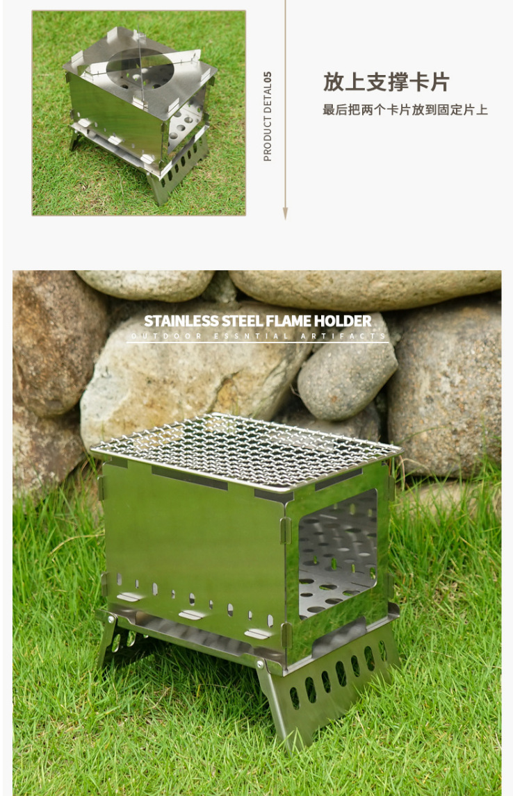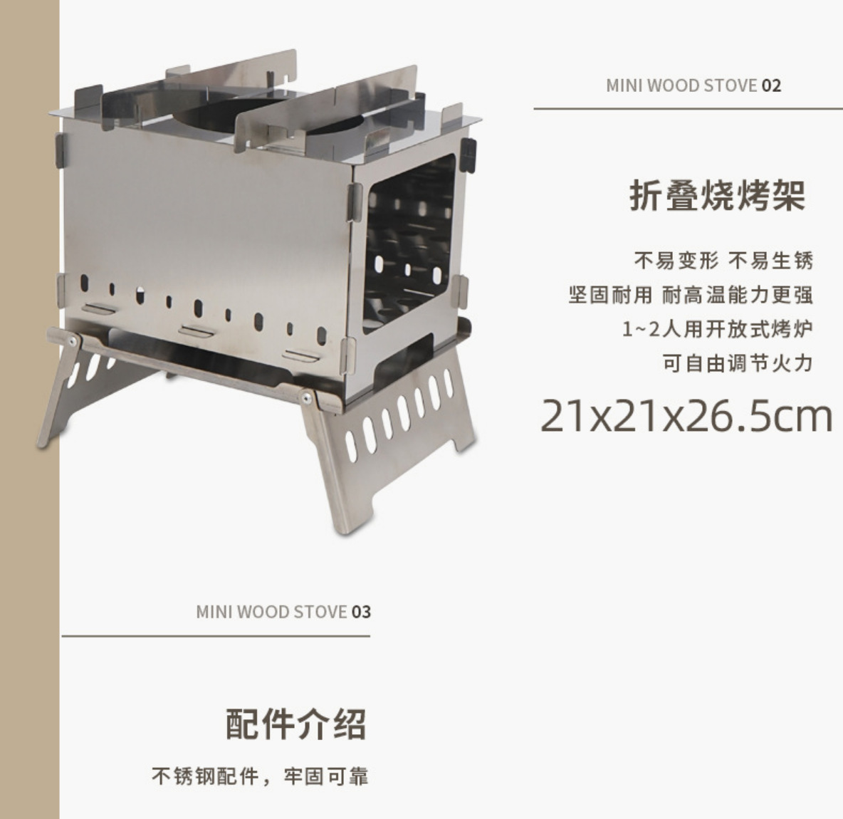 户外折叠柴火炉野营卡片烧烤架防风焚火台野炊露营便携烧水烤火炉