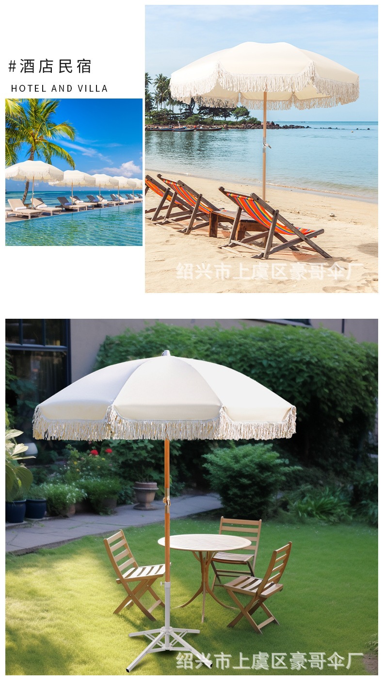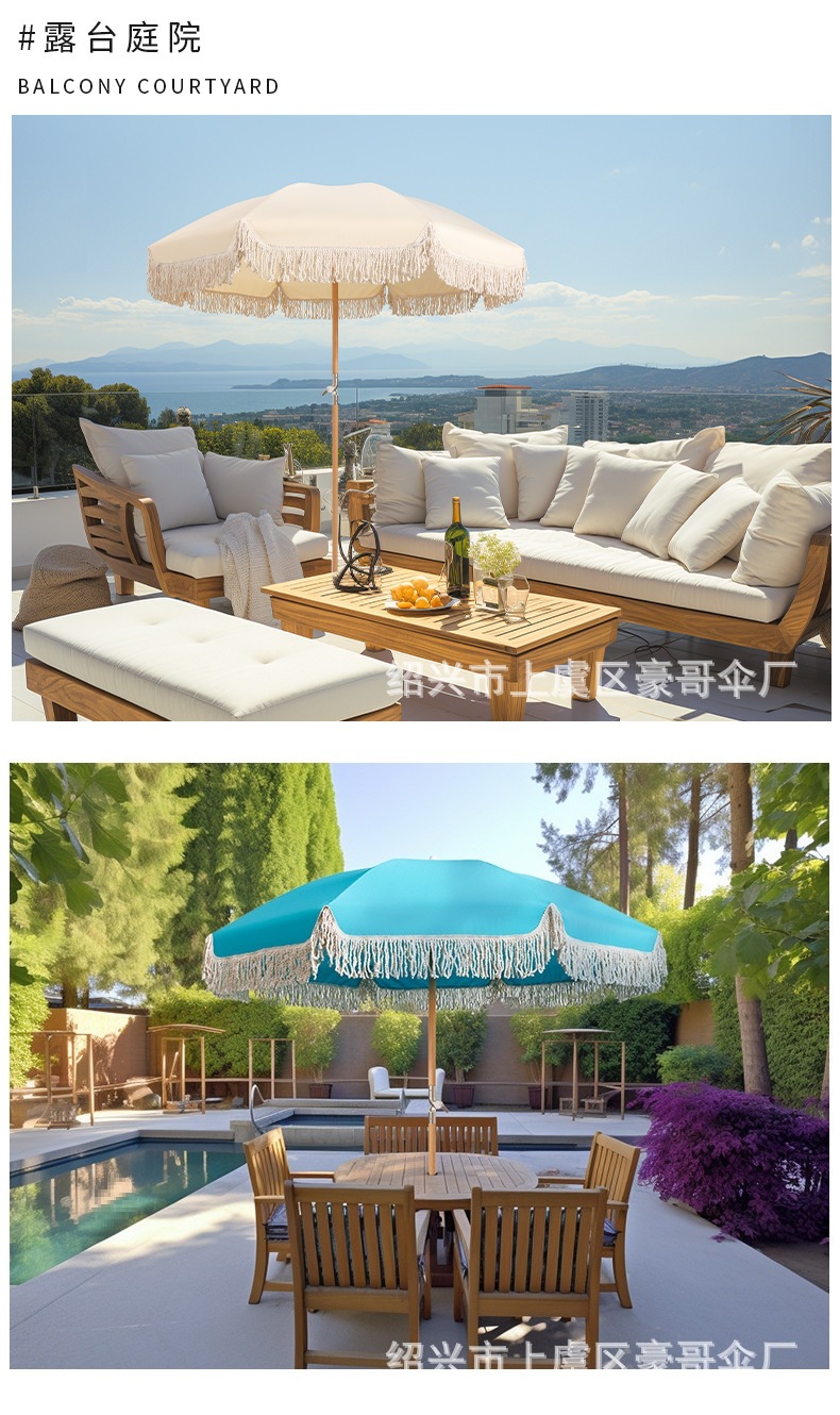 야외 해변 프렌치 태슬 자외선 차단제 안뜰 우산 발코니 정원 야외 우산 소형 파라솔 태양 우산 빌라