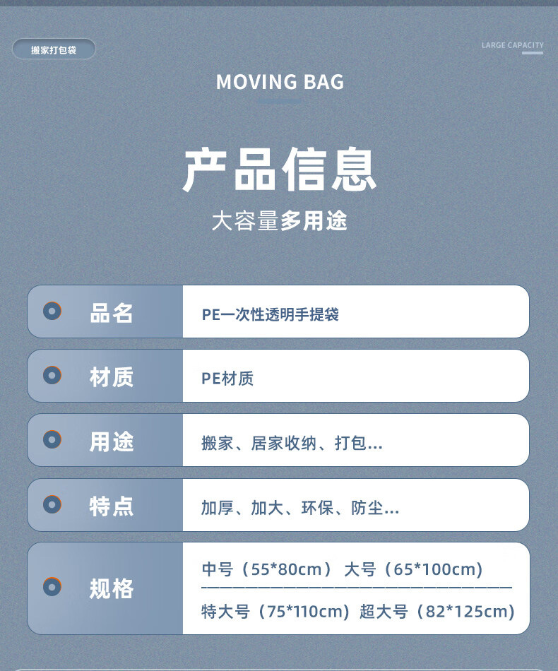 일회용 대용량 이사 포장 가방, 옷, 이불, 베개 보관용, 방진 특수 두꺼운 조끼형 가방스토어 가기