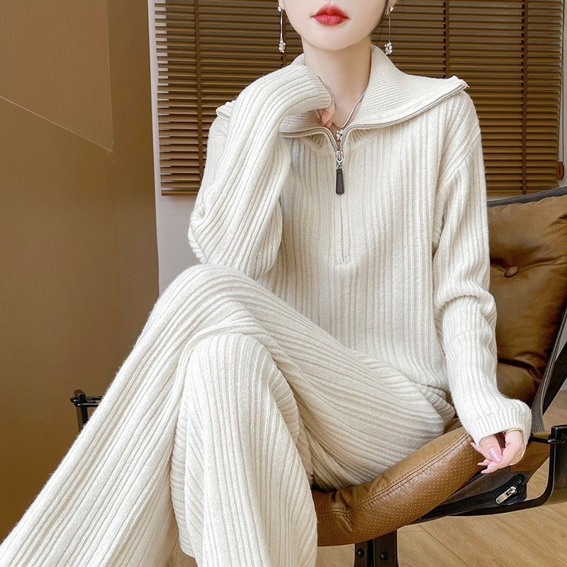 두꺼운 캐주얼 정장 봄, 가을, 겨울 게으른 새로운 패션 니트 스웨터 여성 가을, 겨울 탑 와이드 레그 팬츠 투피스 세트스토어 가기