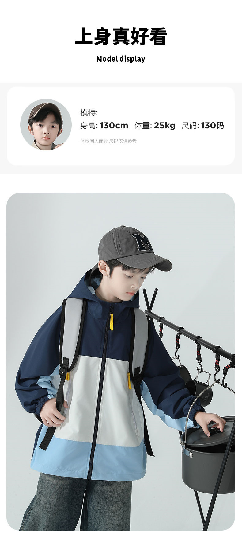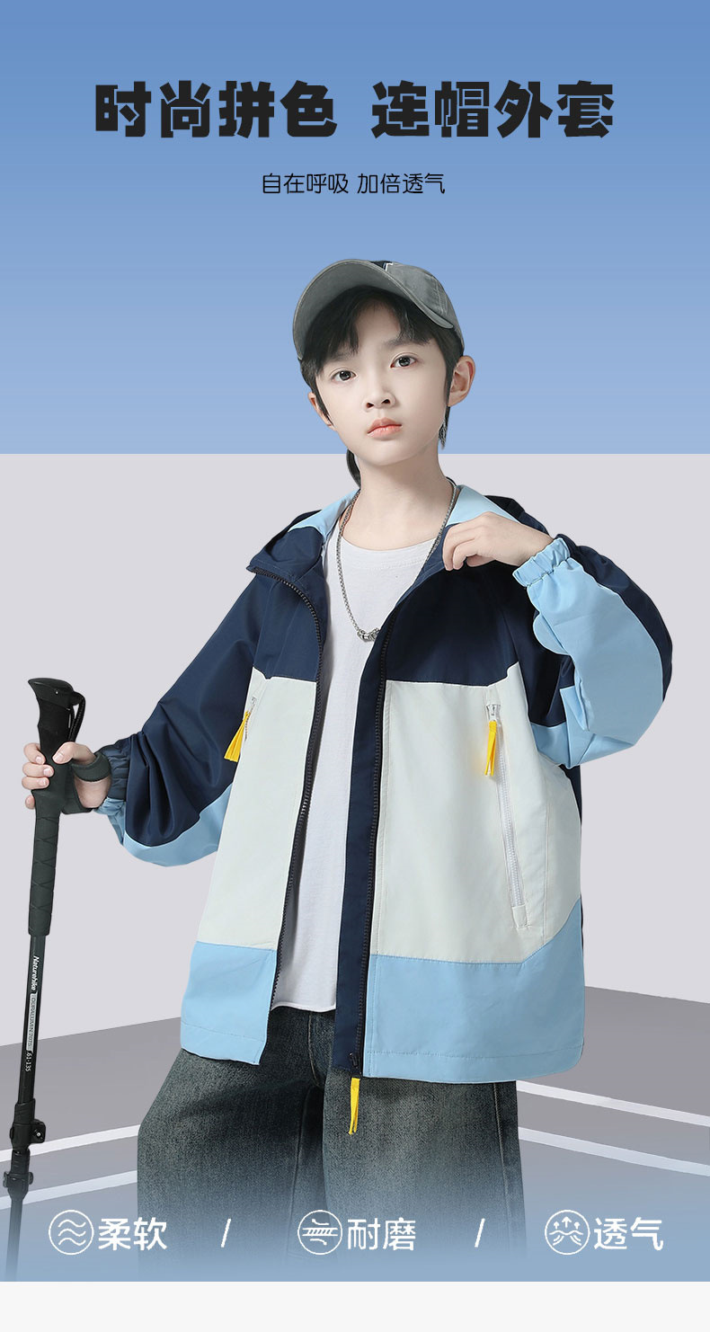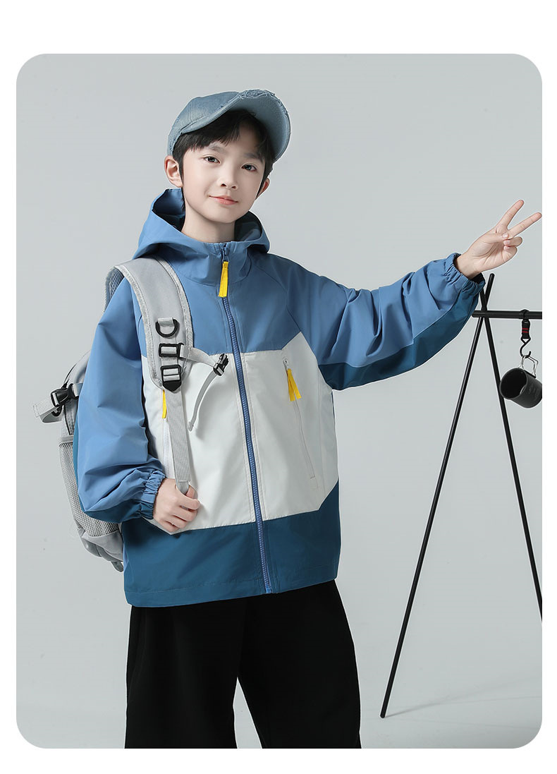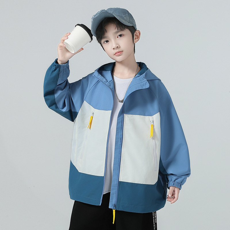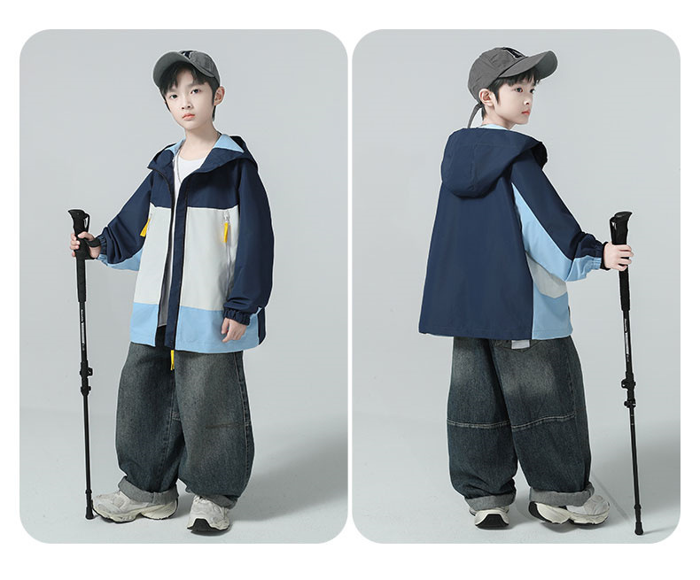 소년 코트 2025 가을 새로운 스타일 어린 소년의 세련된 컬러 블록 코트 세련된 후드 재킷 대비 색 재킷스토어 가기