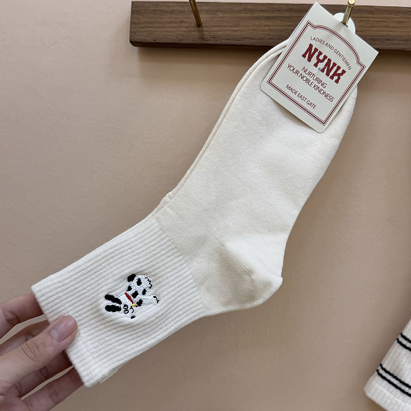 2025 양말 여성 봄과 여름 새로운 스레드 양말 스트라이프 자수 만화 귀여운 중간 튜브 흰색면 양말 도매스토어 가기