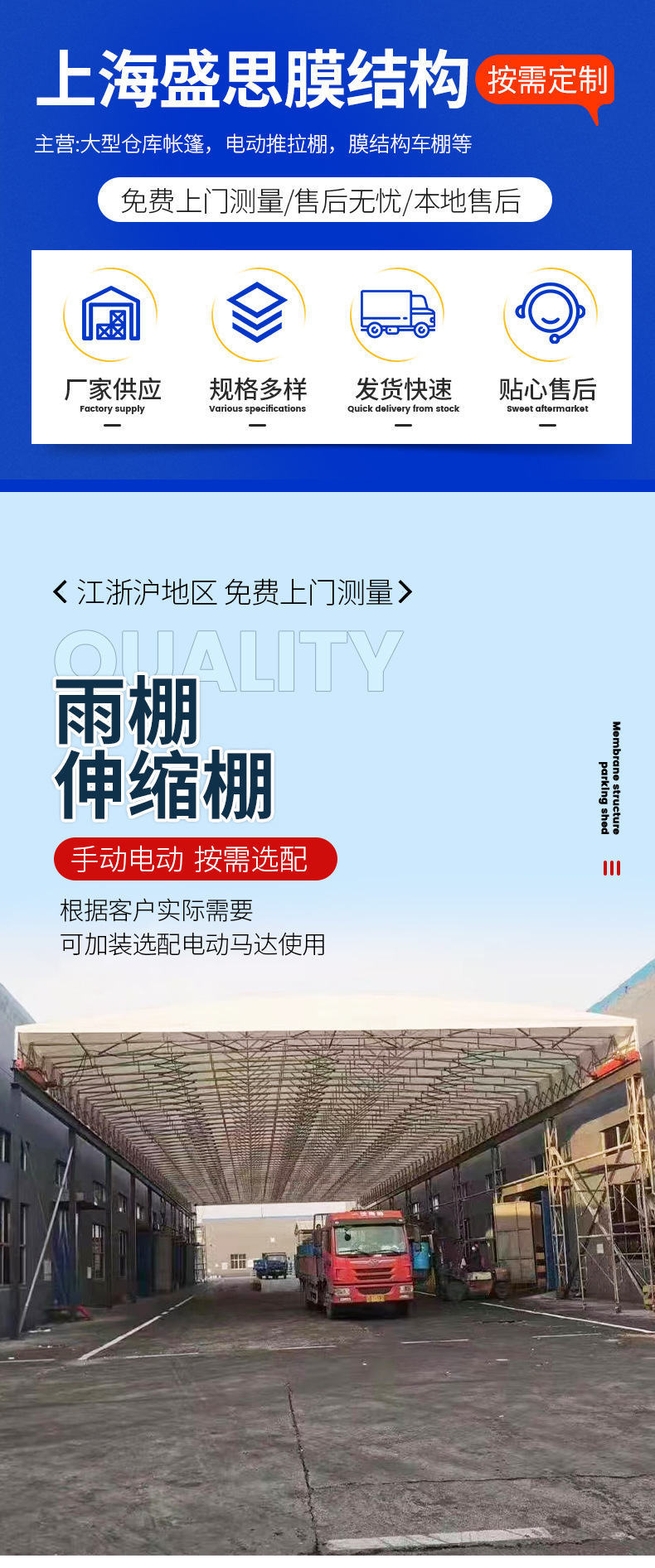 장쑤성, 절강성 및 상하이 지상 전기 이동식 창고 대형 상하차 창고 이벤트 수축 차양 전기 개폐식 차양스토어 가기