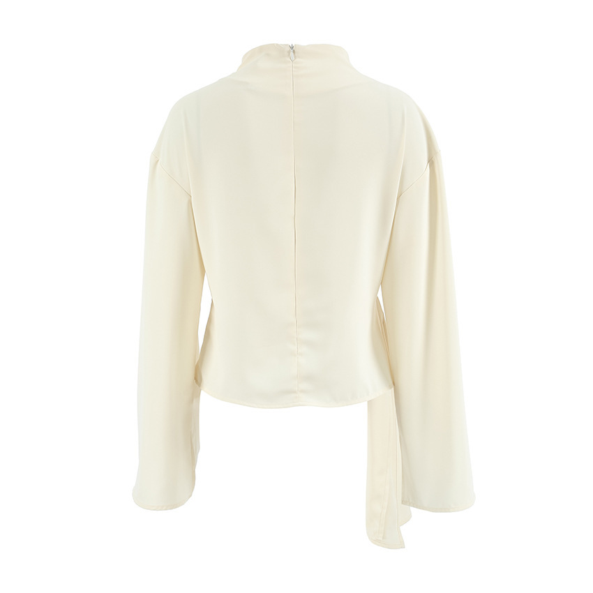 패션 프렌치 쉬폰 하이 엔드 슬릿 여성 셔츠 2025 봄 여름 새로운 살구 컬러 허리 긴팔 탑 여성스토어 가기