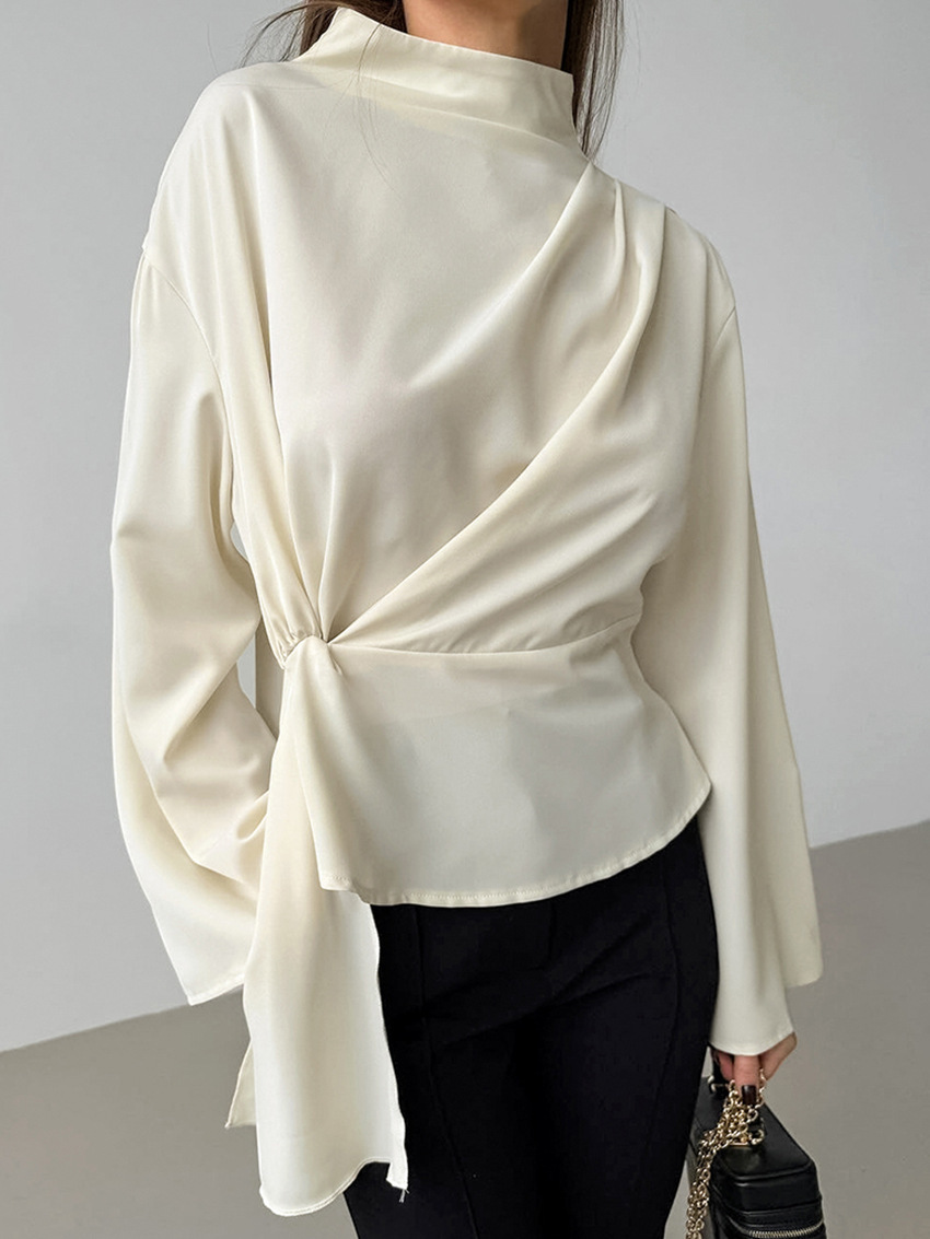 패션 프렌치 쉬폰 하이 엔드 슬릿 여성 셔츠 2025 봄 여름 새로운 살구 컬러 허리 긴팔 탑 여성