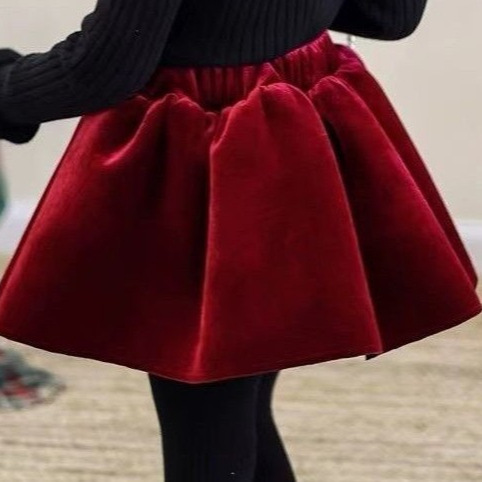 여아 스커트, 캐주얼 힙 스커트, 가을 겨울 벨벳 두꺼운 심플 스트레이트 A라인 스커트, 여아용 다용도 짧은 스커트