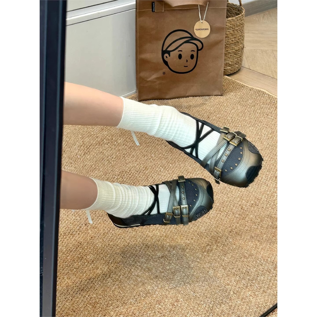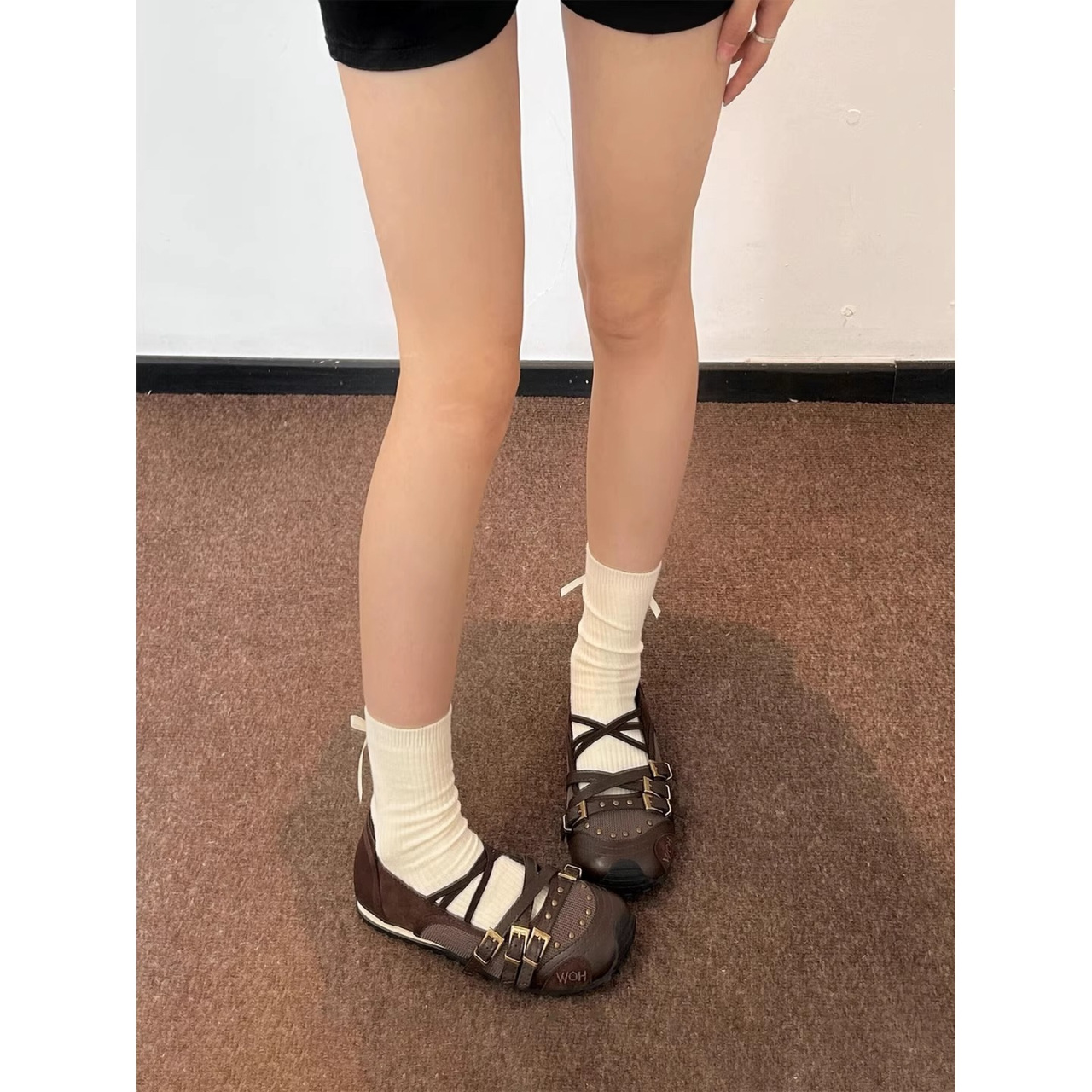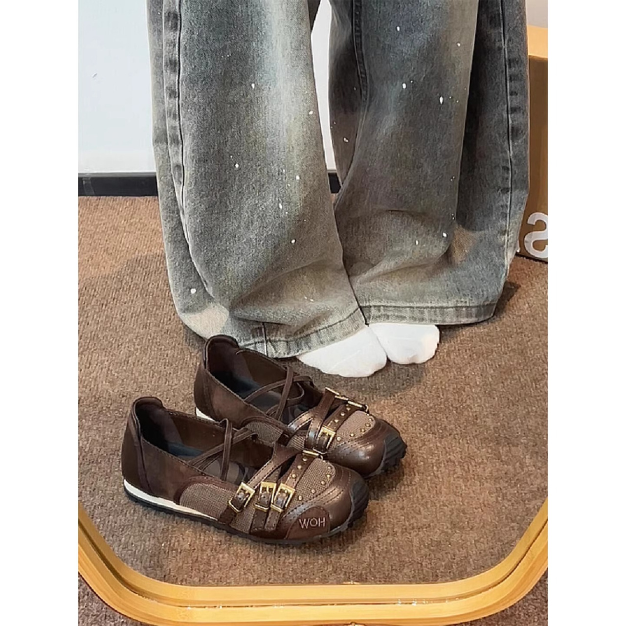 여성을위한 복고풍 발레 플랫 슈즈 2025 여름 새로운 부드러운 가죽 리벳 내부 강화 펌프 메리 제인 신발 유행스토어 가기