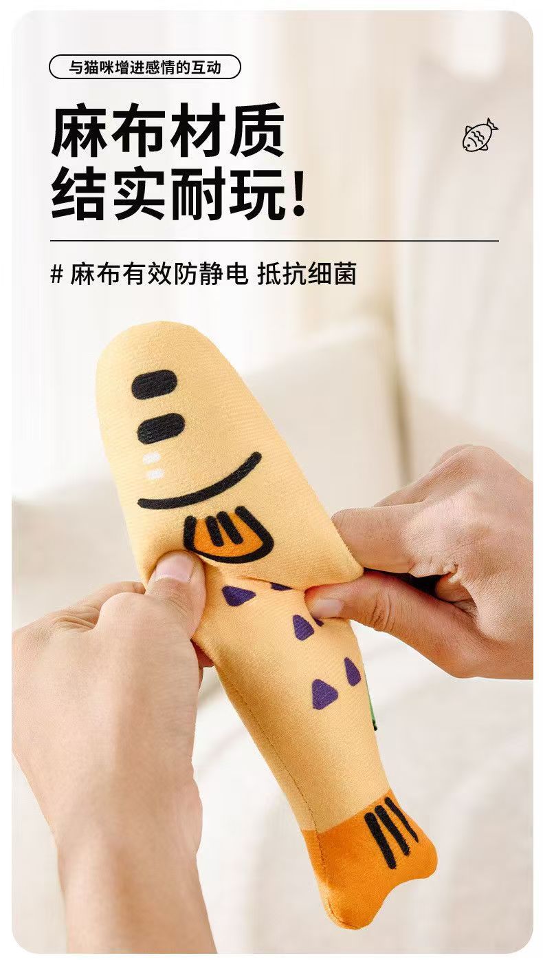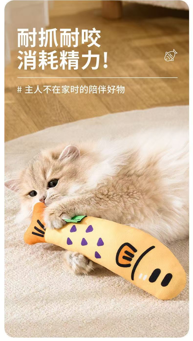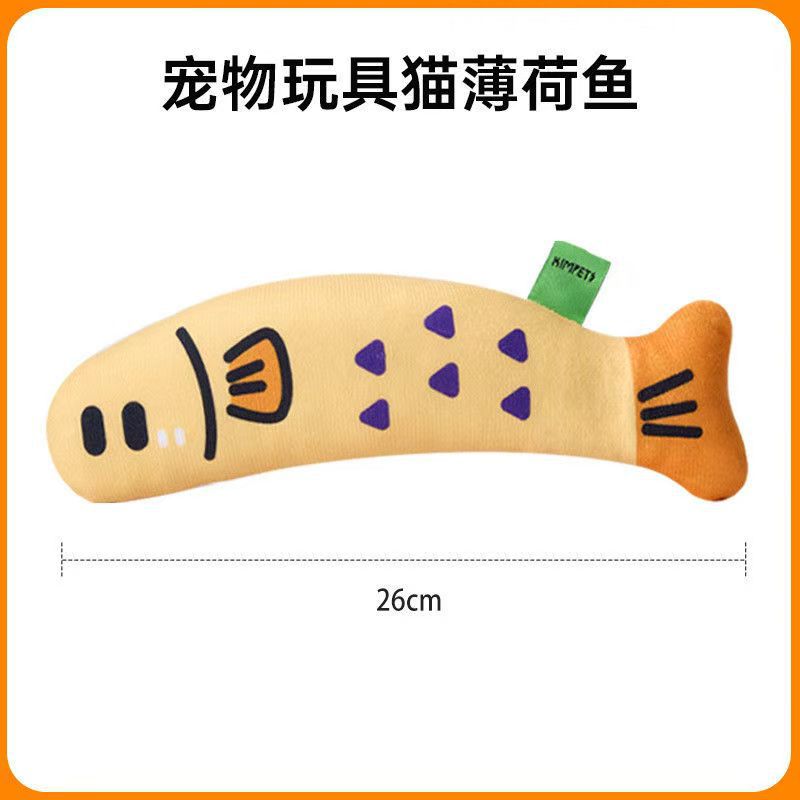 국경을 넘어 인기 있는 고양이 장난감, 고양이를 즐겁게 해주는 마시멜로 물고기 장난감, 고양이를 위한 캣닢 함유 애완동물 장난감