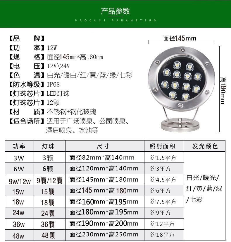 수중 램프 물고기 연못 방수 스포트라이트 led 야외 다채로운 풍경 스테인레스 스틸 수조 저전압 12v24v 수중 램프스토어 가기