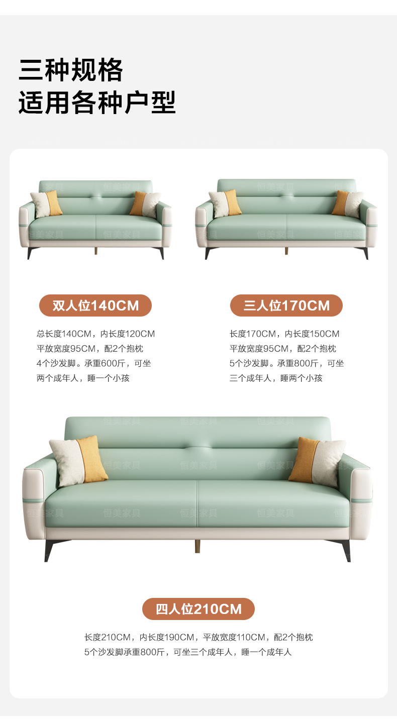 • 三人位长1.7米*宽0.95米(乳胶)