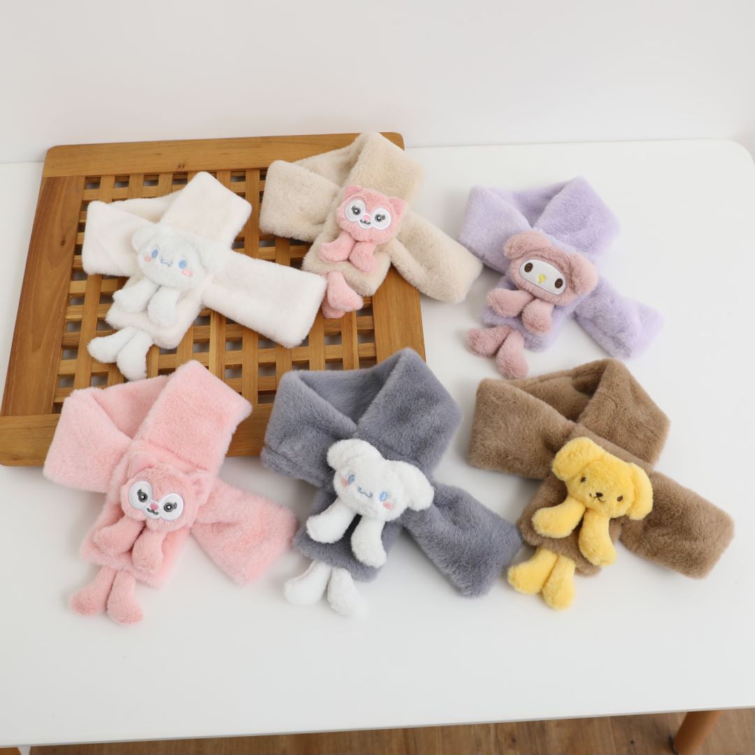 한국판 만화 어린이 스카프, 매우 귀엽고 예쁜 소녀들을 위한 플러시 소재의 두꺼운 만화 스타일 어린이용 털 스카프