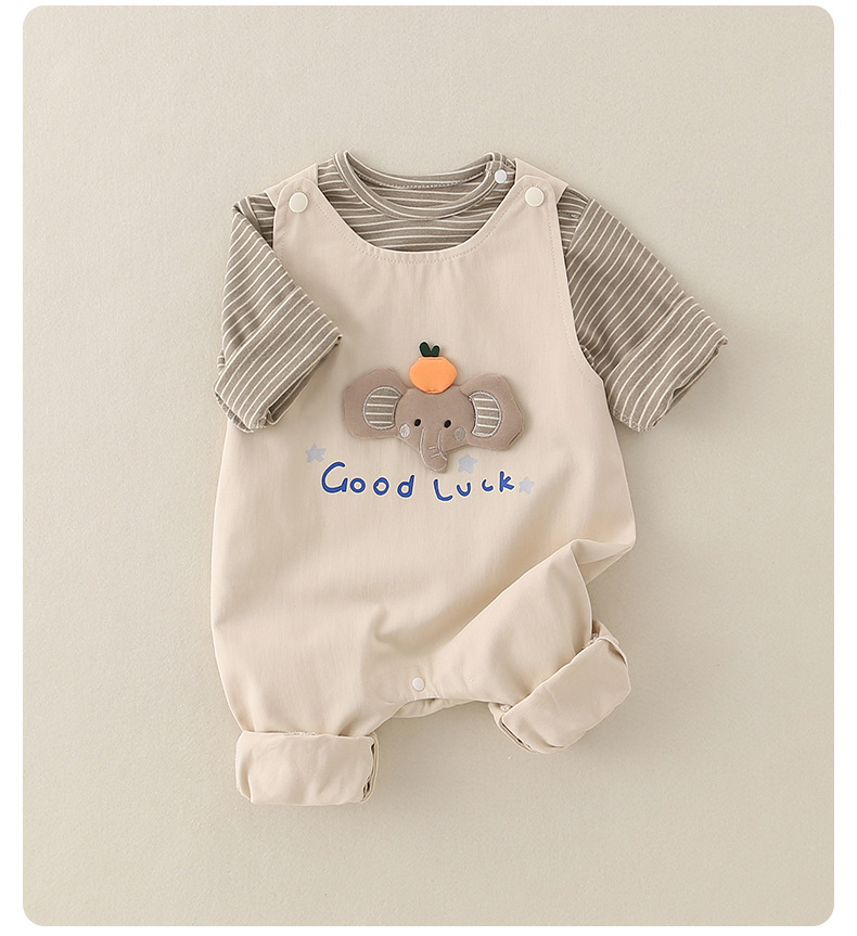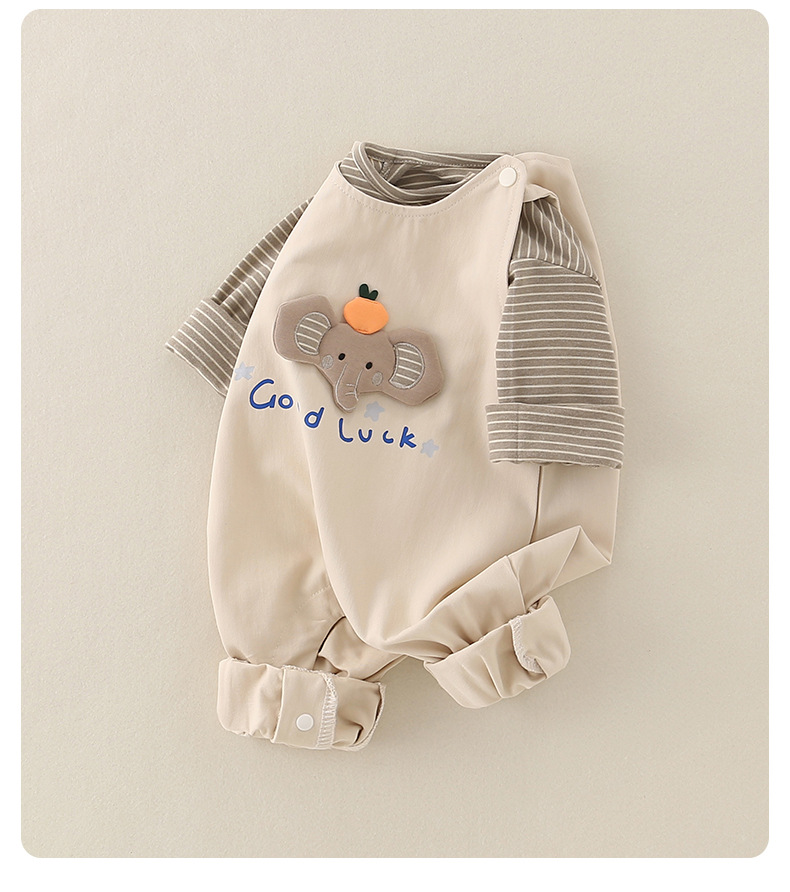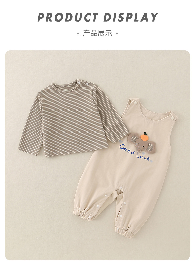 婴儿a类纯棉背带裤套装宝宝秋季新款衣服小童儿童女童童装连体衣
