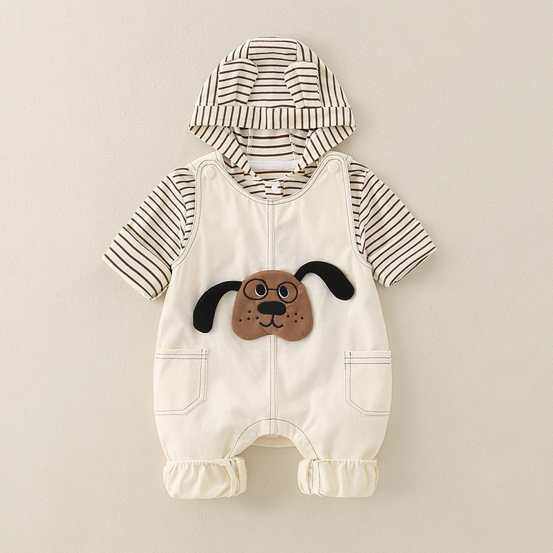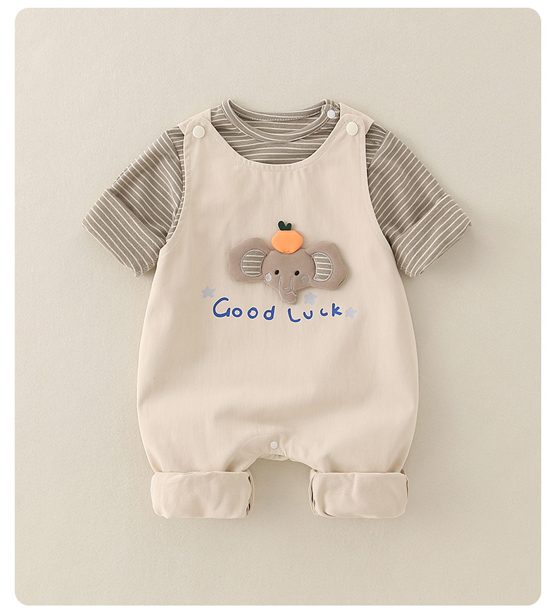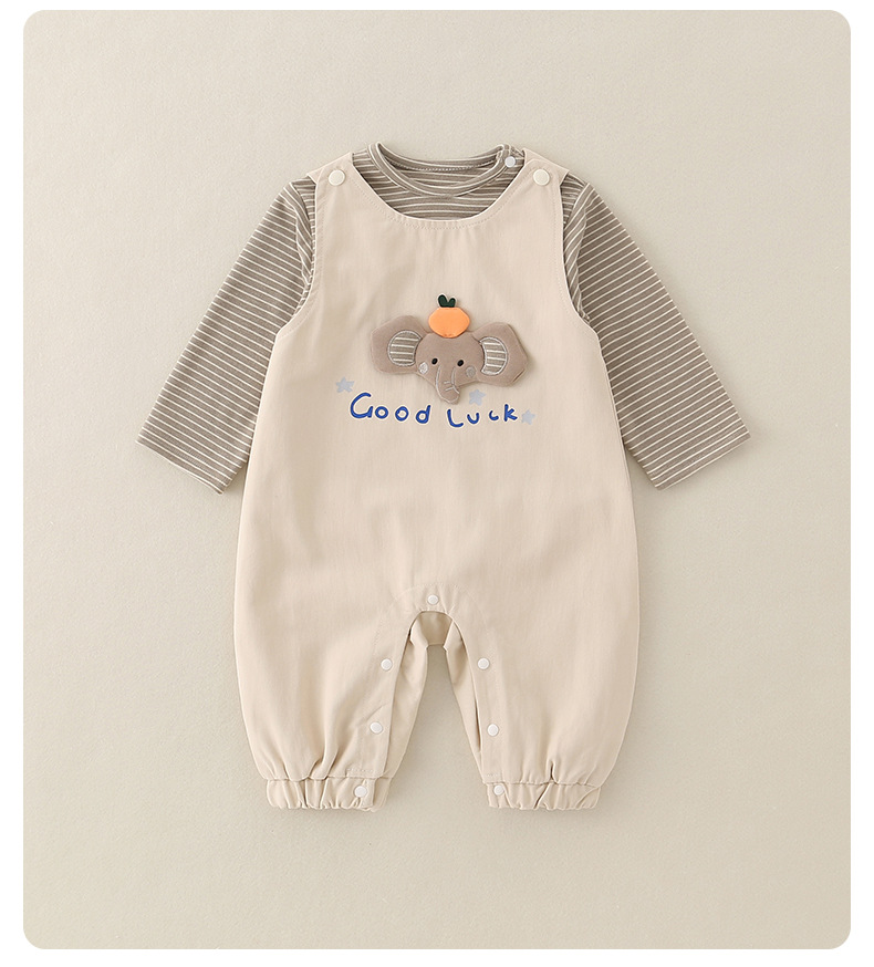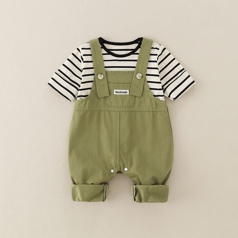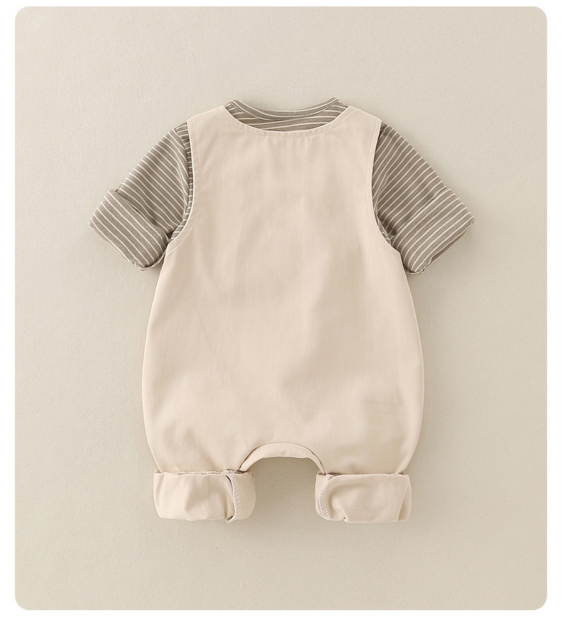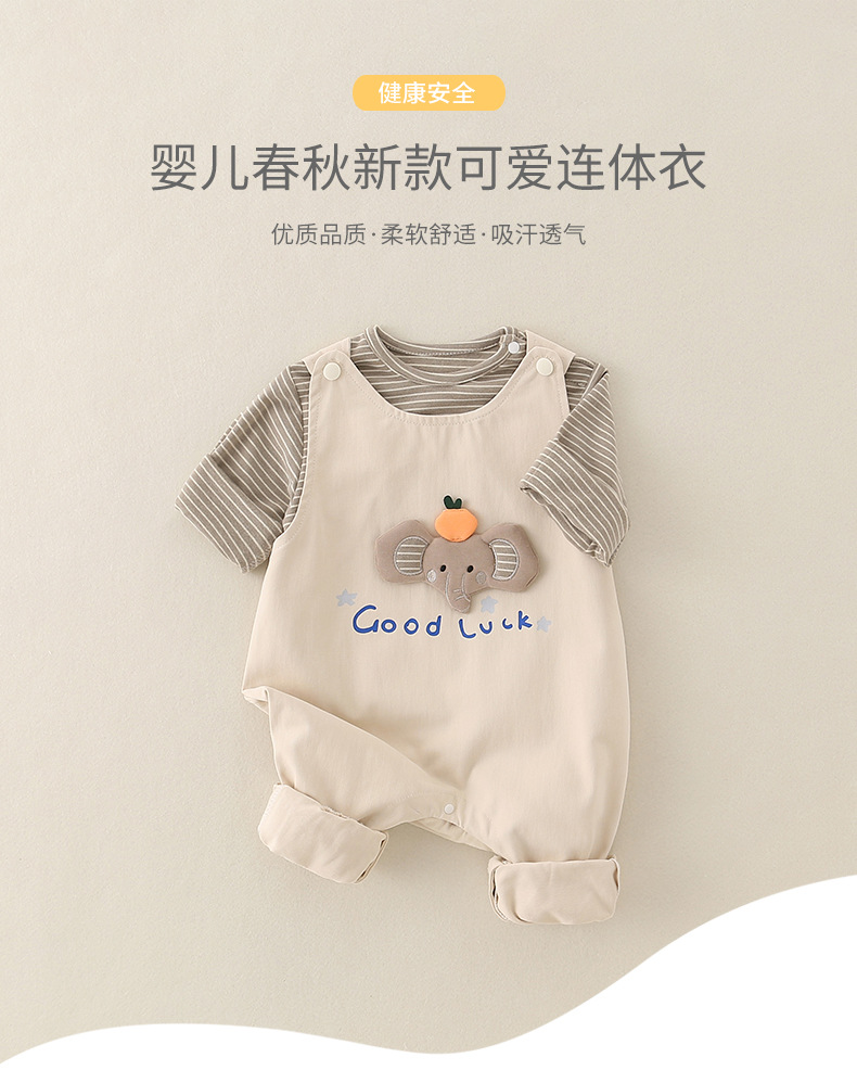 2025婴儿秋季新款a类休闲连体衣男宝宝工装背带裤套装新生儿爬服