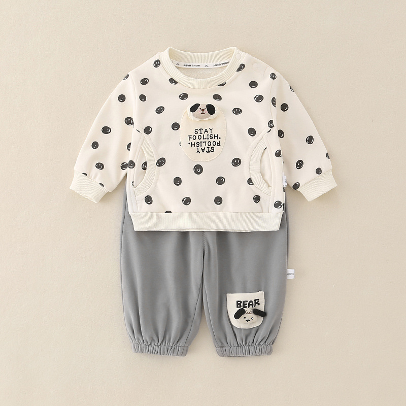 2025秋季新款a类棉婴儿宝宝衣服男童小童裤套装儿童可爱秋装童装
