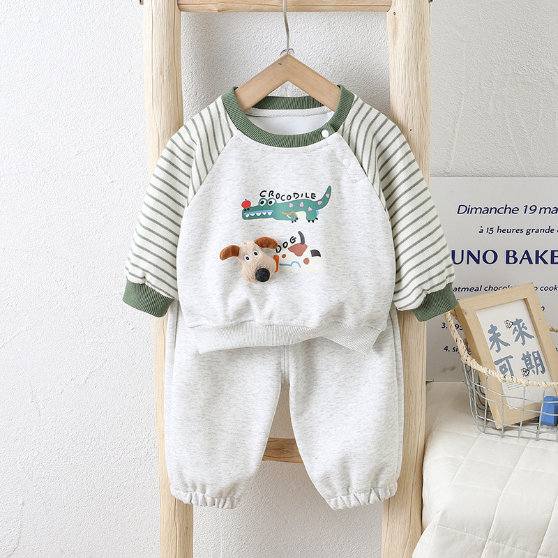 2025秋季新款a类棉童套装婴幼儿童装男宝宝卡通小童儿童衣服爬服