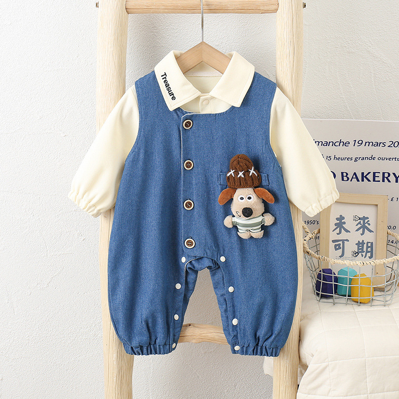 2025秋季新款a类纯棉男童连体衣套装儿童可爱童装婴儿男宝宝衣服