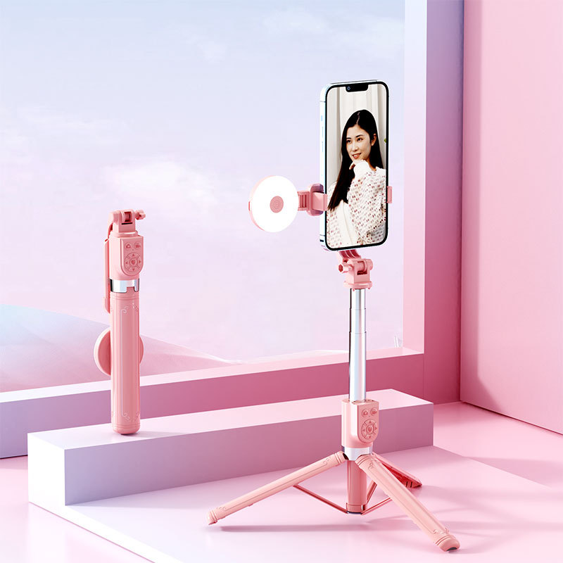 휴대폰 블루투스 셀카봉, 접이식 삼각대, 라이브 방송 및 사진 촬영용 일체형 휴대용 휴대폰 거치대