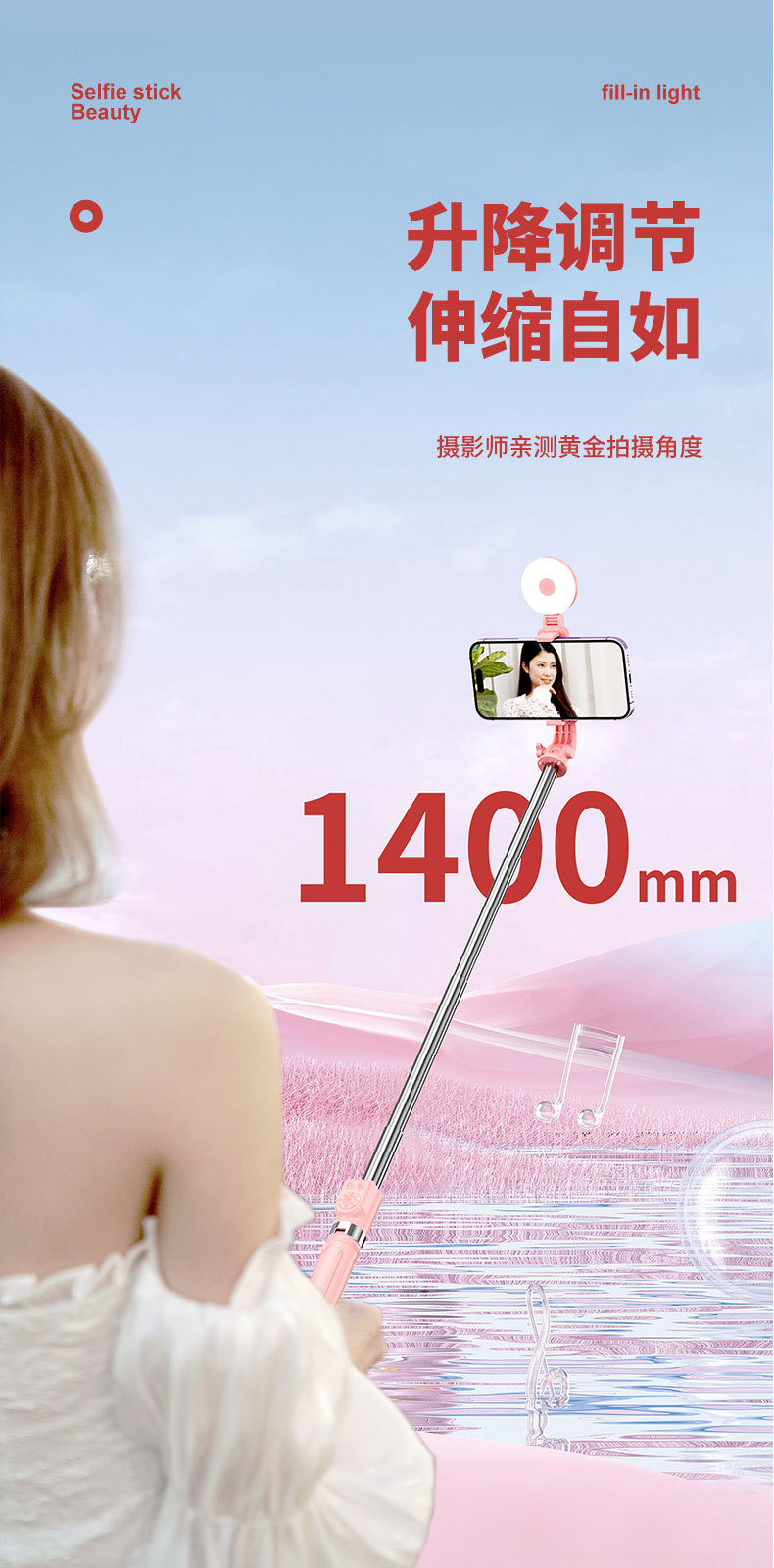 Z14 pro 휴대폰 블루투스 셀카봉(조명 포함) Douyin 라이브 사진 촬영 올인원 휴대용 휴대폰 홀더