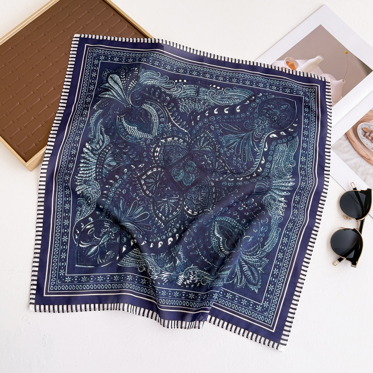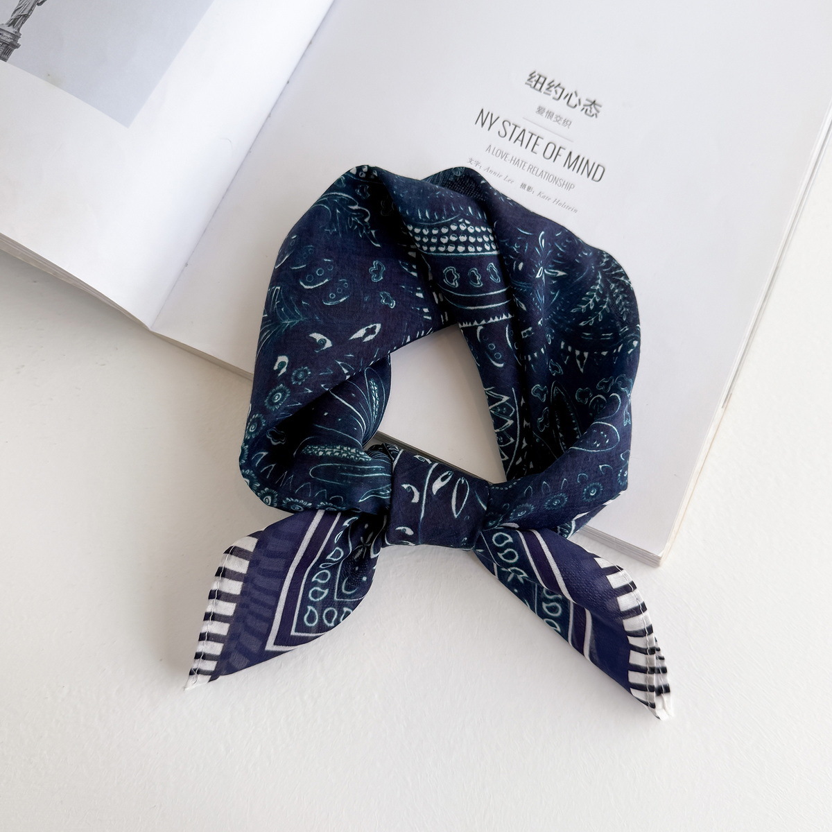 국경을 넘나드는 새로운 문학적 복고풍 캐슈넛 토템 실크 작은 사각형 스카프 혼합 면 실크 스카프 장식 머리 스카프