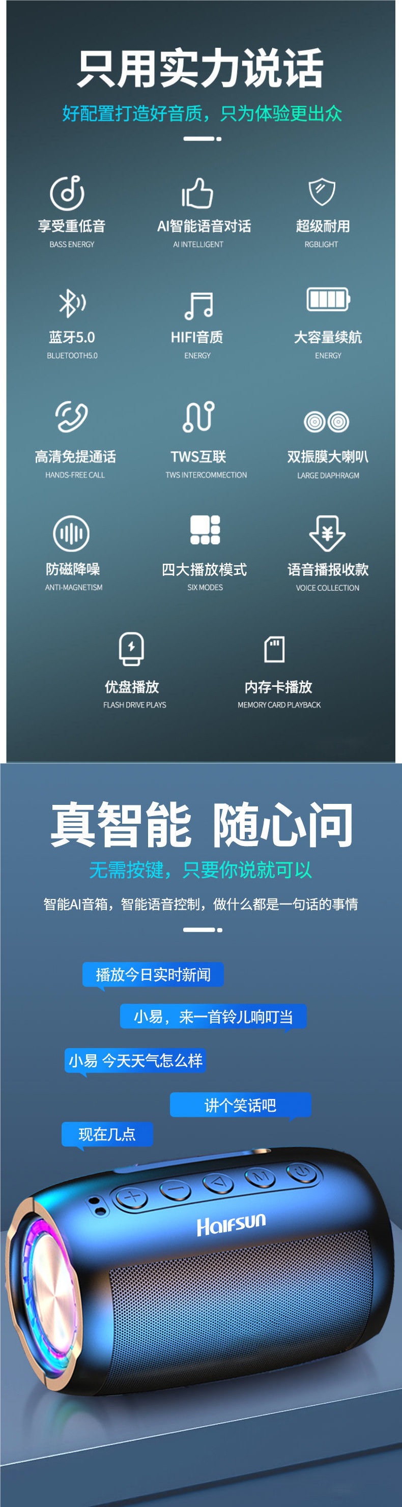 8000곡의 노래가 내장된 AI 스마트 오디오 서브우퍼 블루투스 대용량 고품질 스피커 무선 오디오