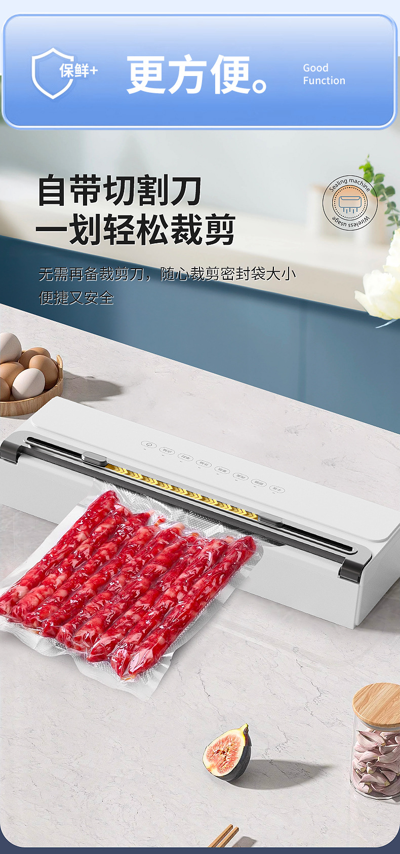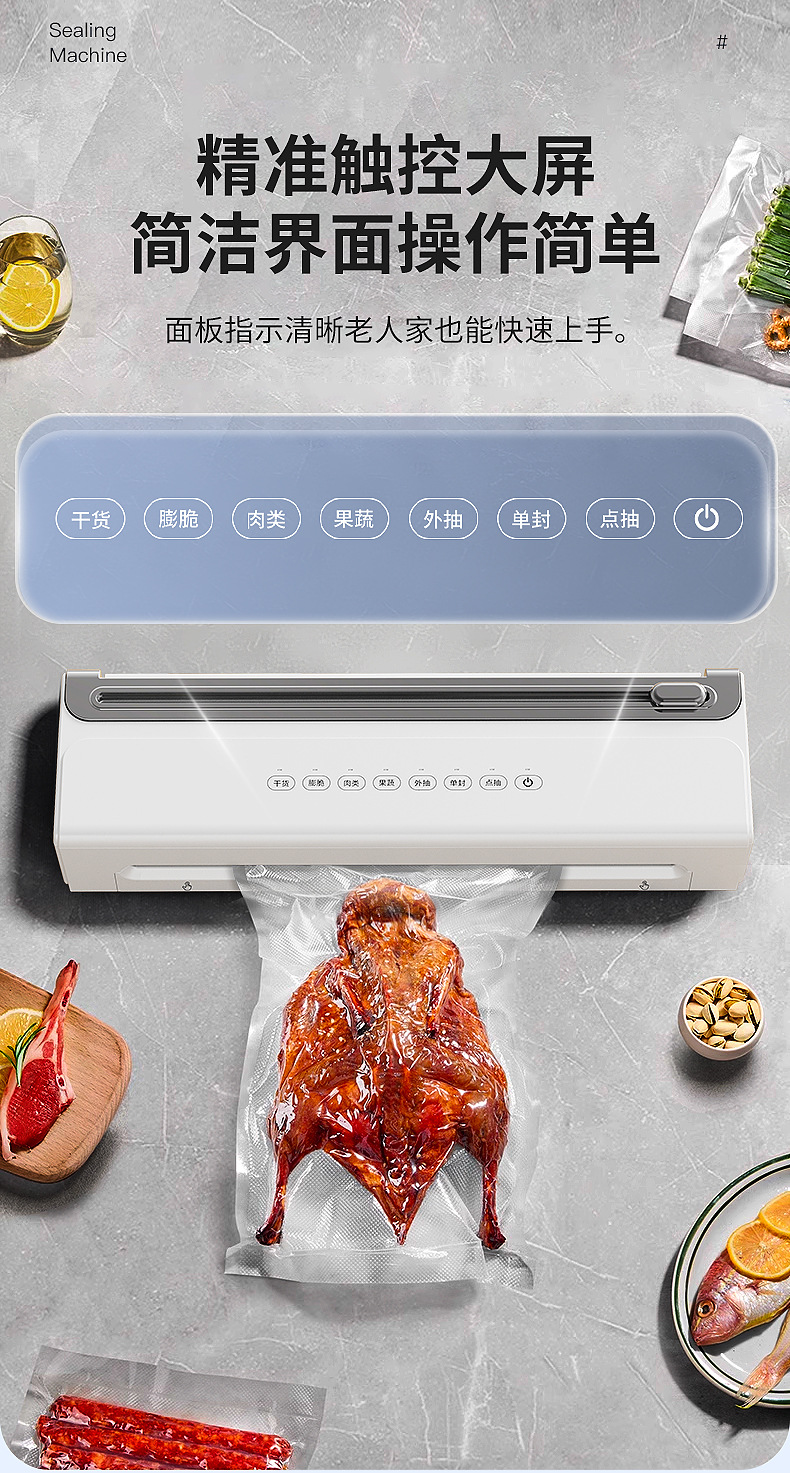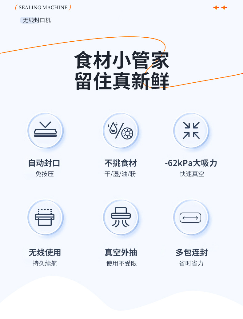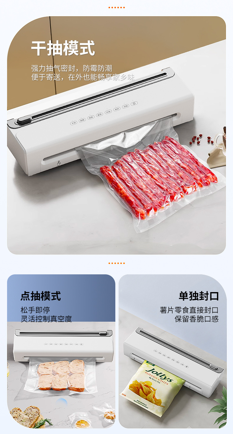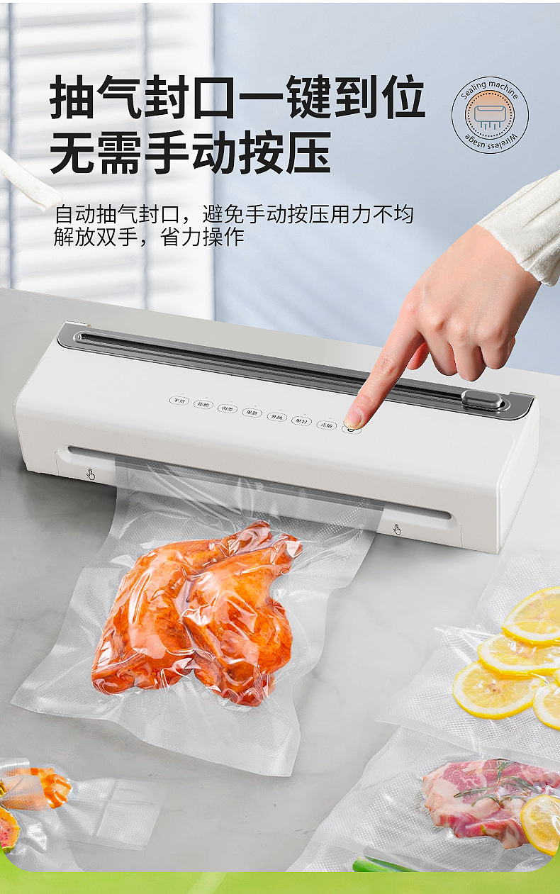 功能介绍:免按压真空封口 单封口 外抽等