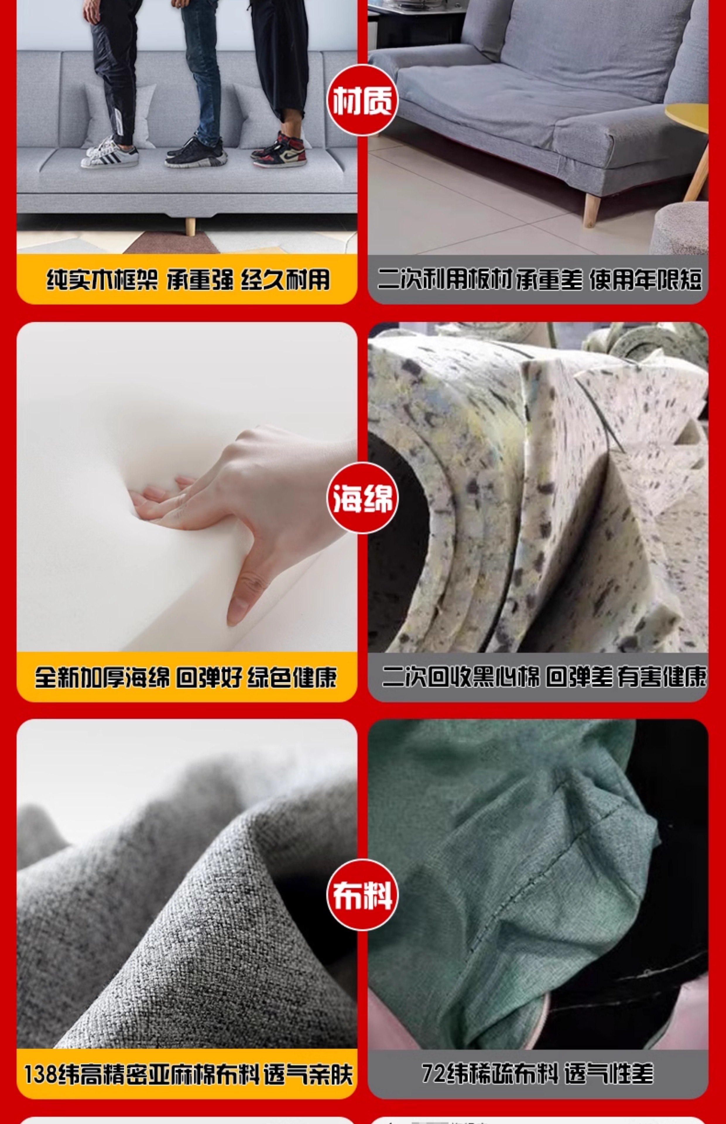 • 3-4人座(1.8米)无抱枕【可当床】
