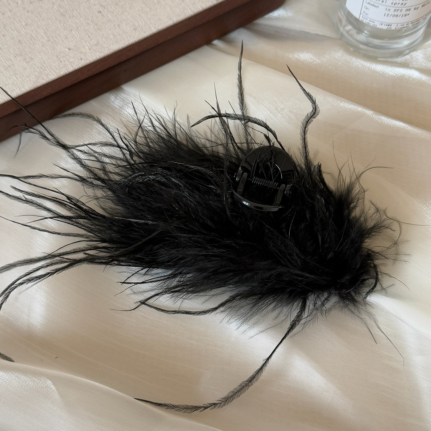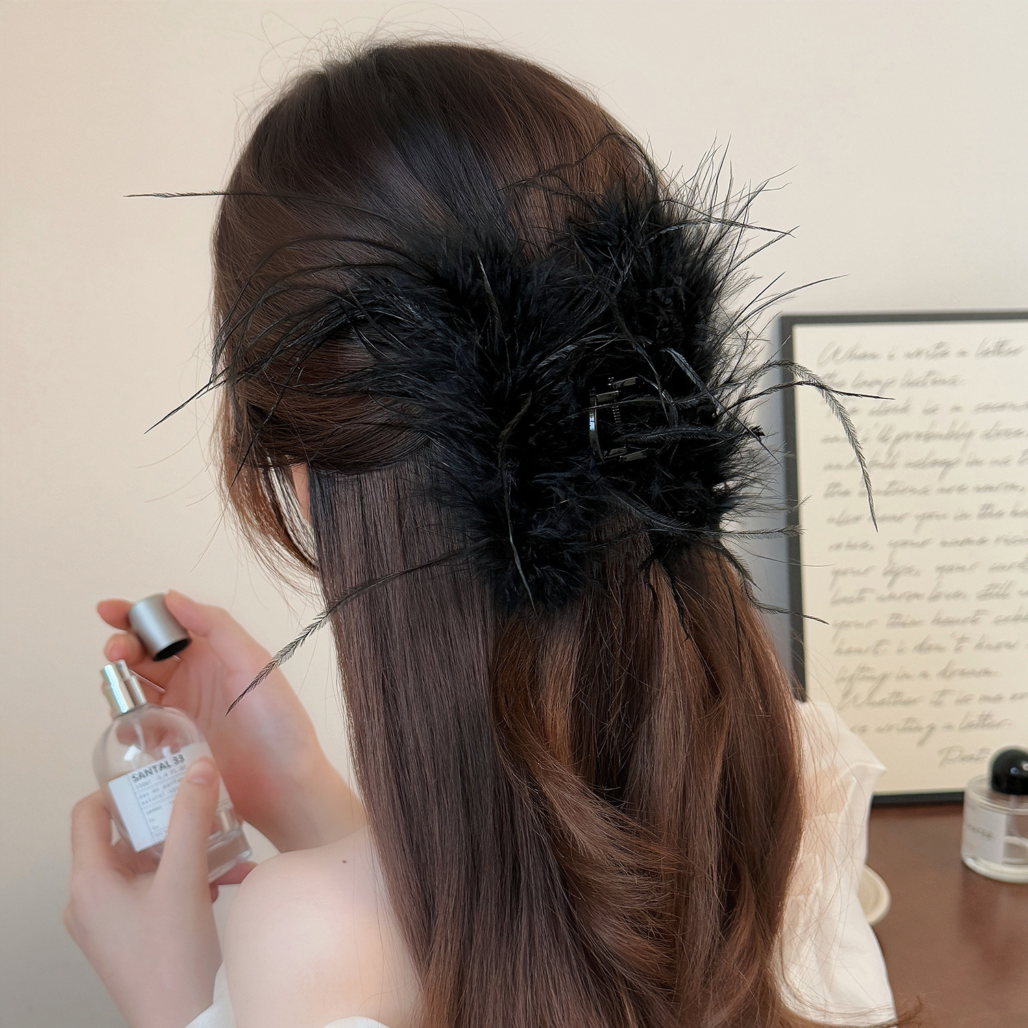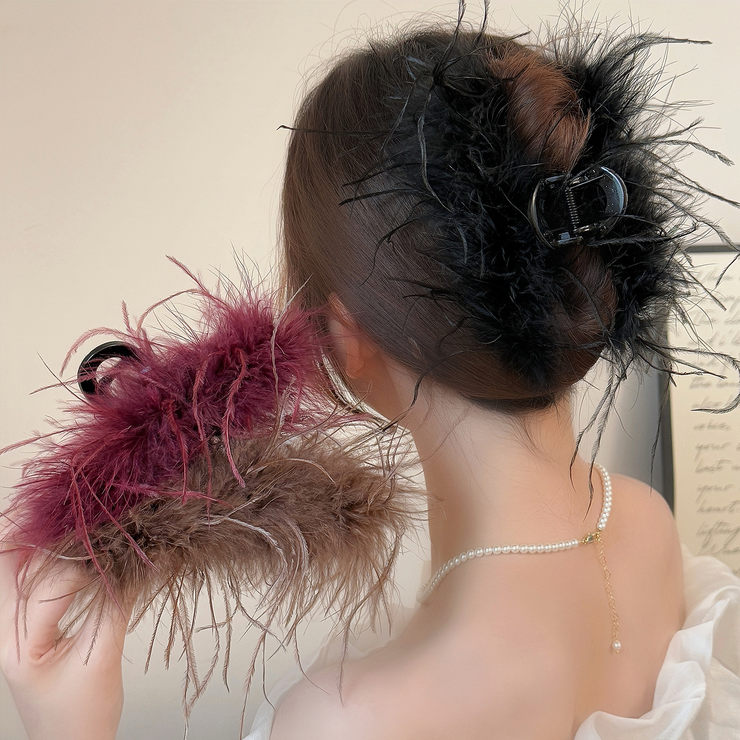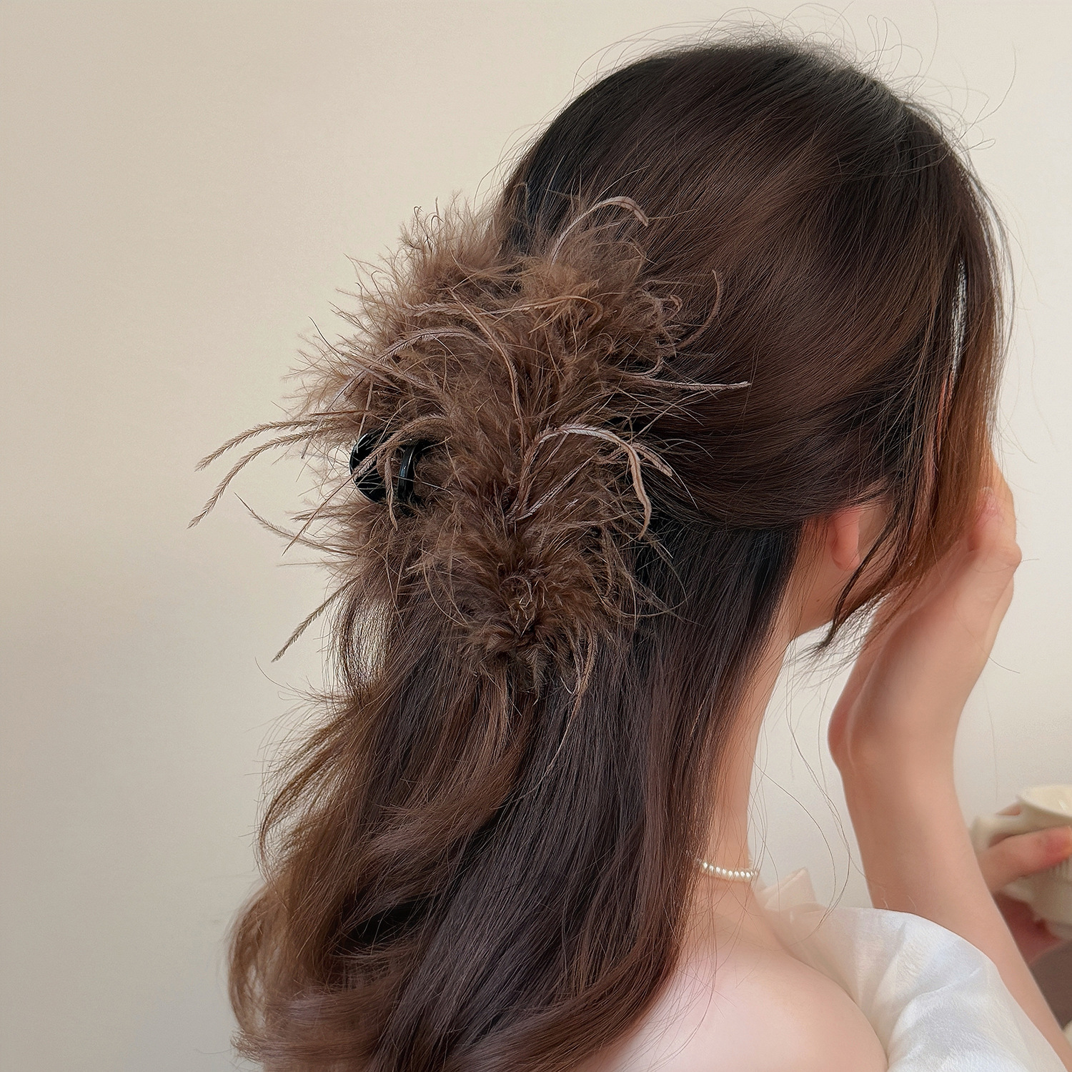 모발 볼륨을 보여주는 대형 깃털 집게, 고급스러운 새로운 스타일의 뒷머리 머리핀, 여성용 타조털 상어 집게
