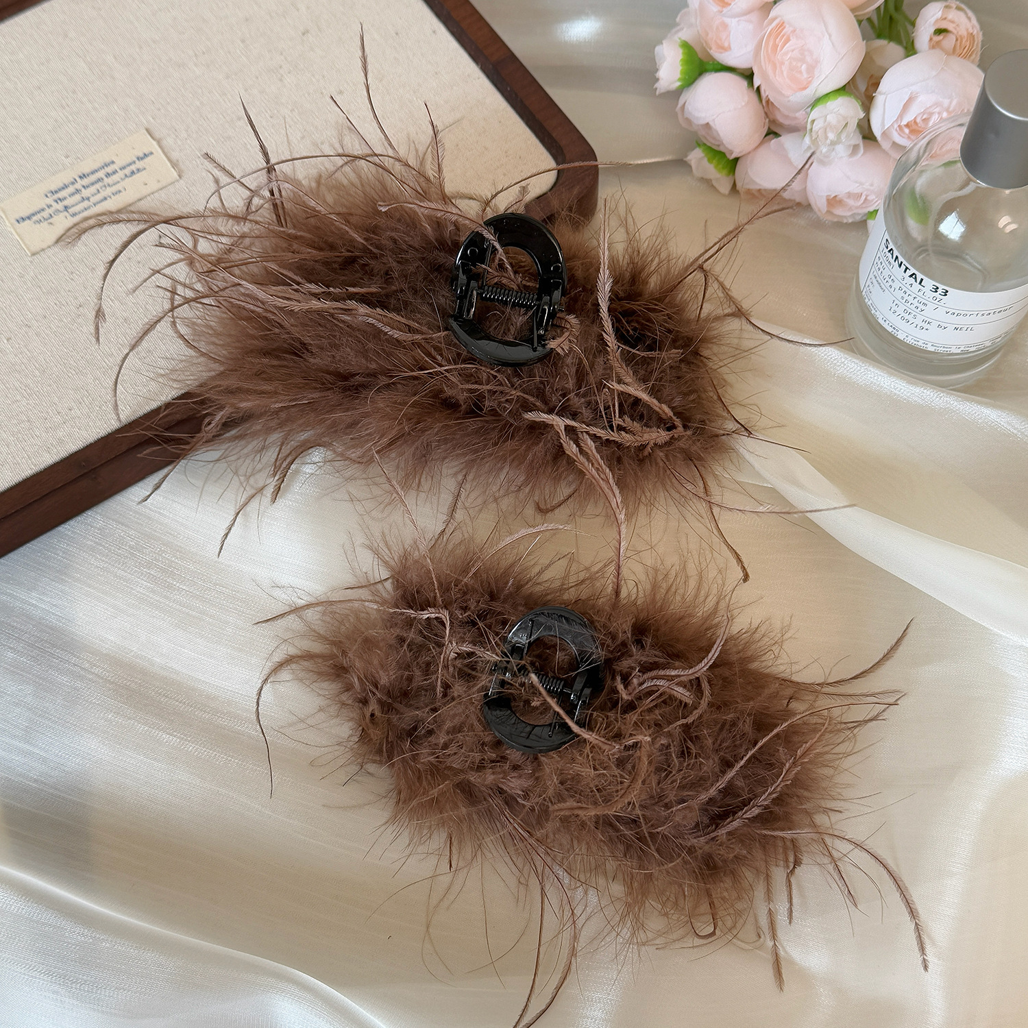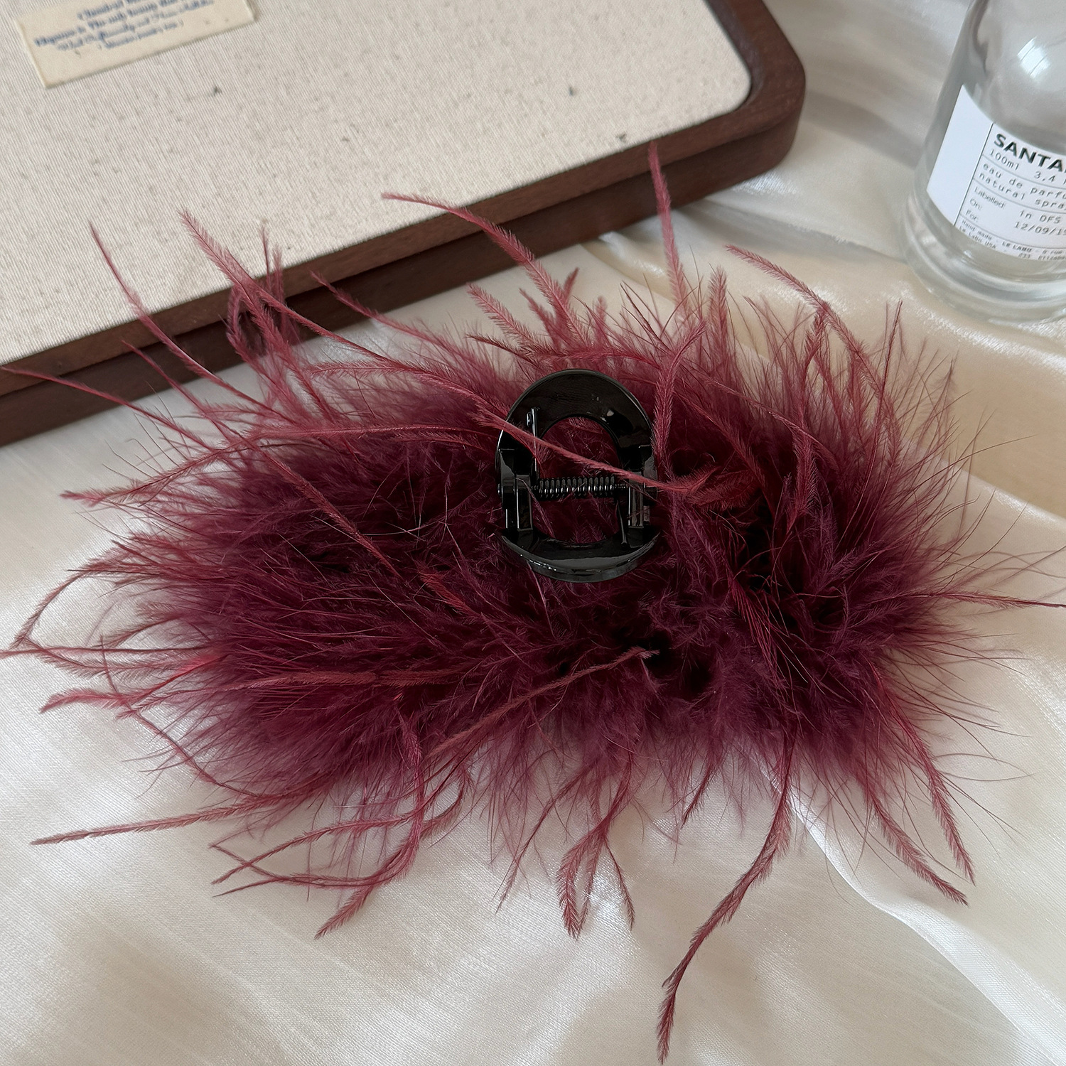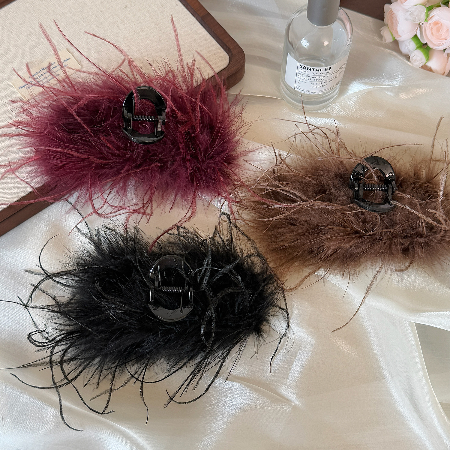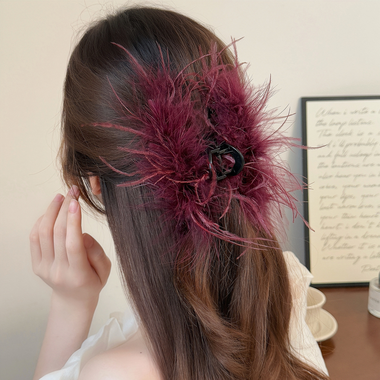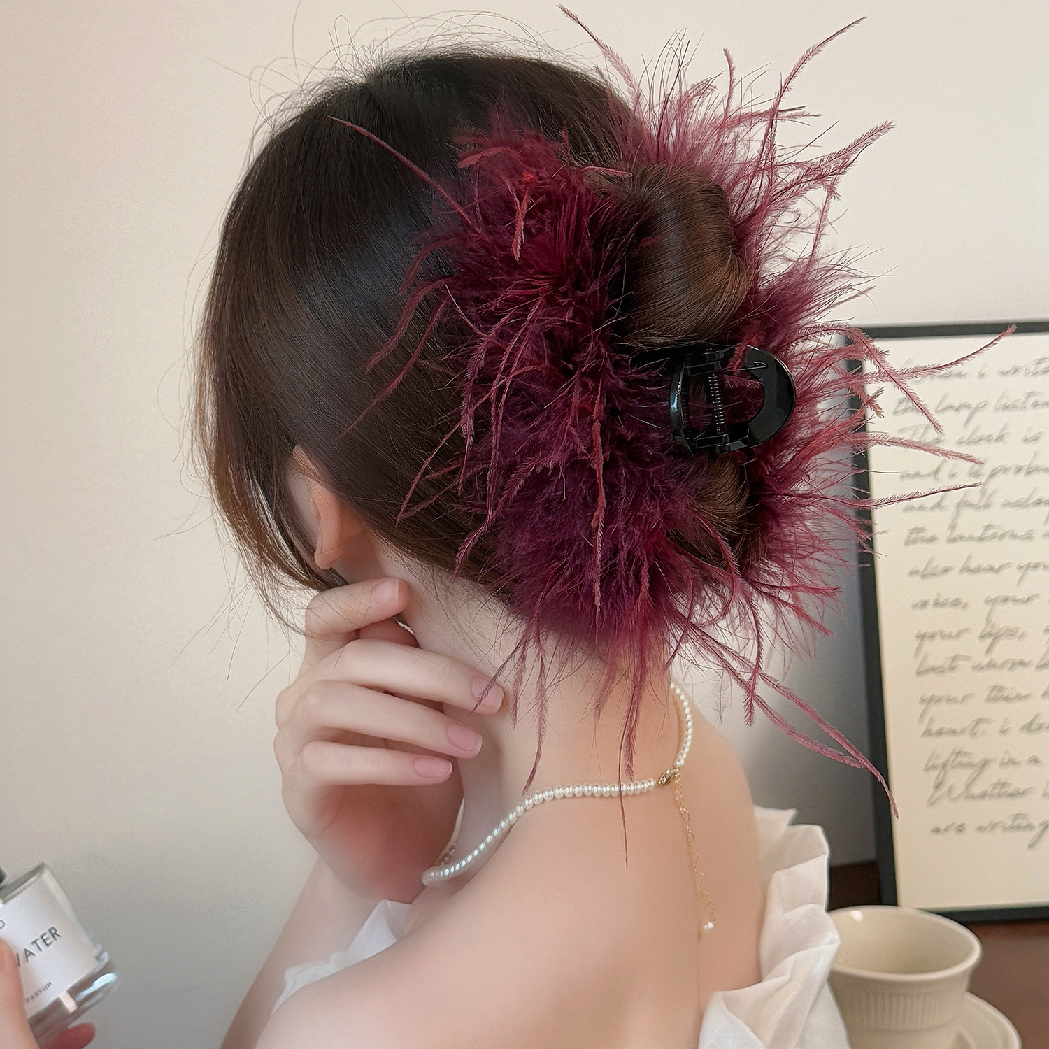 모발 볼륨을 보여주는 대형 깃털 집게, 고급스러운 새로운 스타일의 뒷머리 머리핀, 여성용 타조털 상어 집게